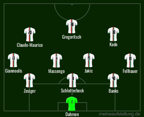 Dahmen – Zesiger, Schlotterbeck, Banks – Fellhauer, Massengo, Jakic, Giannoulis – Kade, Claude-Maurice – Gregoritsch