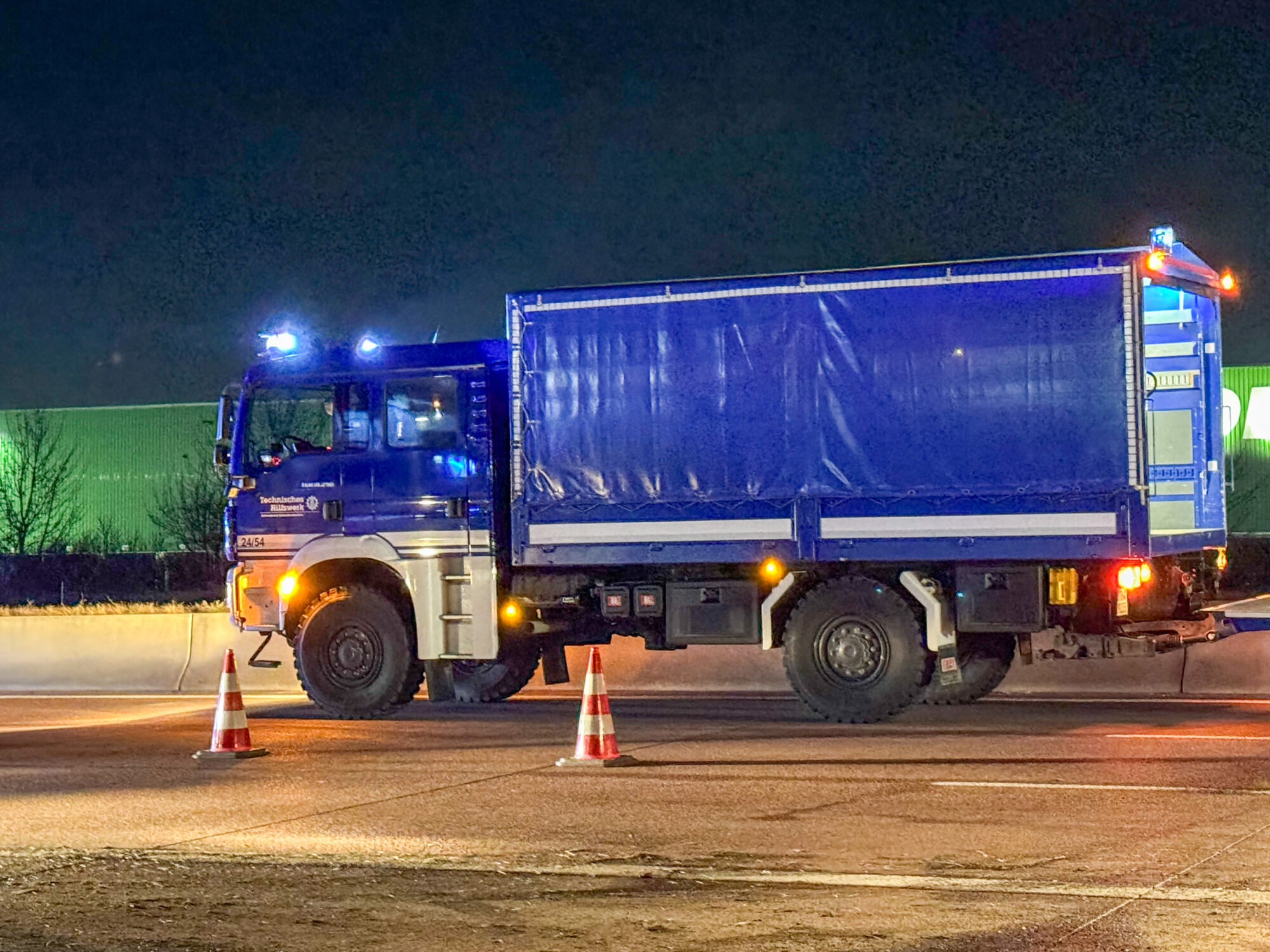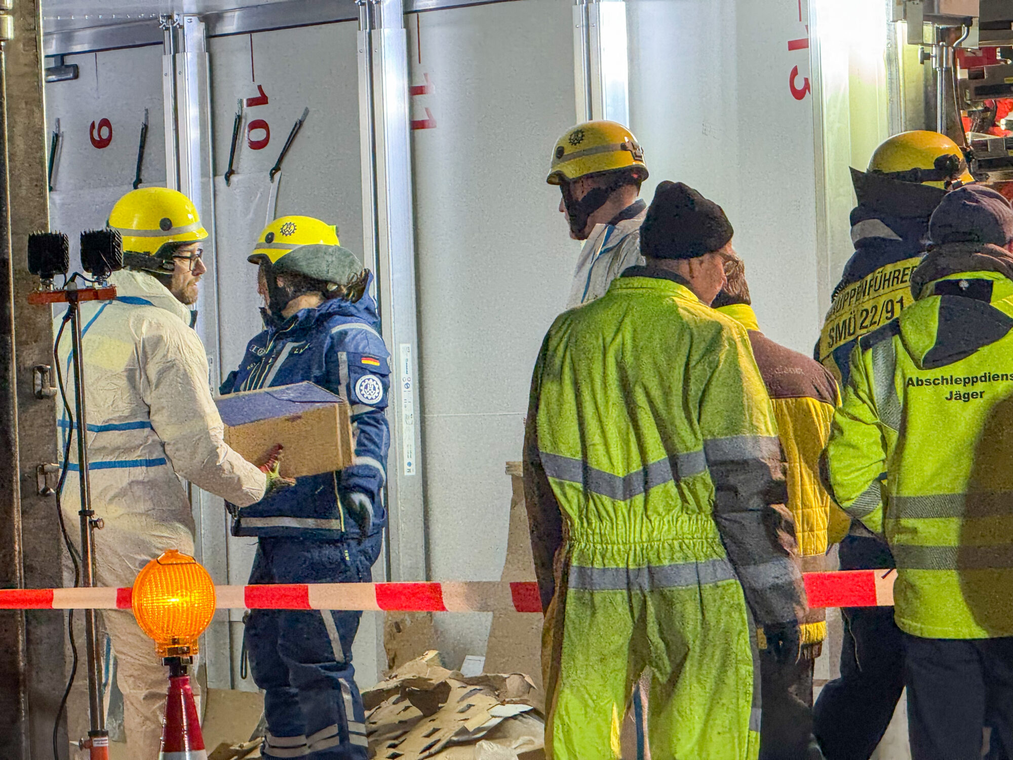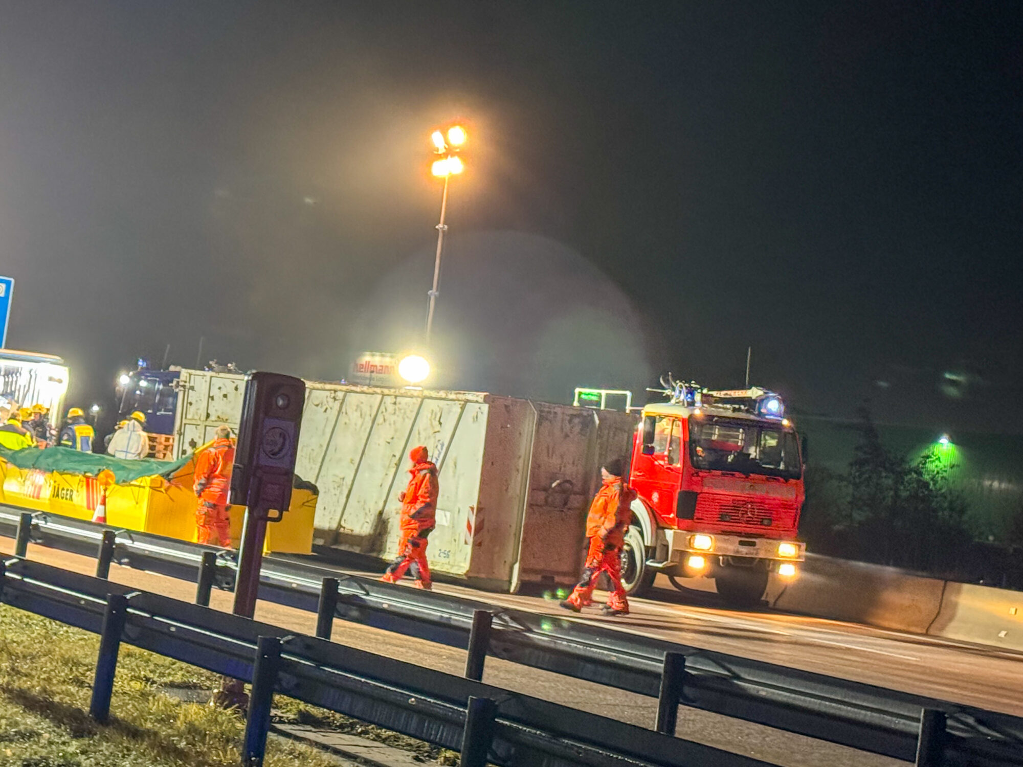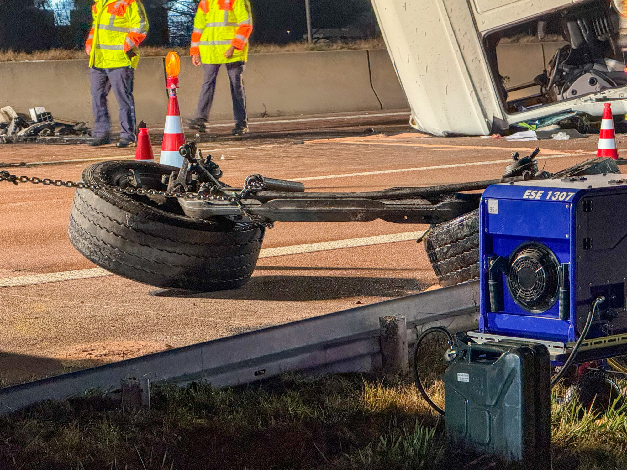 Da der Lastwagen große Mengen an Käse, Milch und weiteren Kühlwaren geladen hatte, mussten Feuerwehr und THW den gesamten Auflieger per Hand ausräumen, bevor ein Kran das Wrack bergen konnte. Die Arbeiten dauerten bis tief in die Nacht.