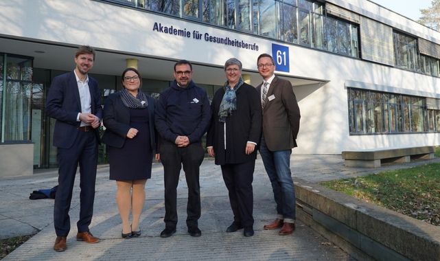 Dass die Akademie für Gesundheitsberufe hierbei eine besondere Rolle spielt, wurde deutlich: Als künftiger Praxispartner des Ministeriums sollen an der Pflegeschule künftig Fallbesprechungen in der ambulanten Pflege pilotiert werden (Praxisbesprechungen im Skills Lab) und die Freigabe klinischer Ambulanzen zum Erlernen der Behandlungspflege im ambulanten Sektor erprobt werden (wie Wundambulanz, Dermatologie, Gefäßambulanz).