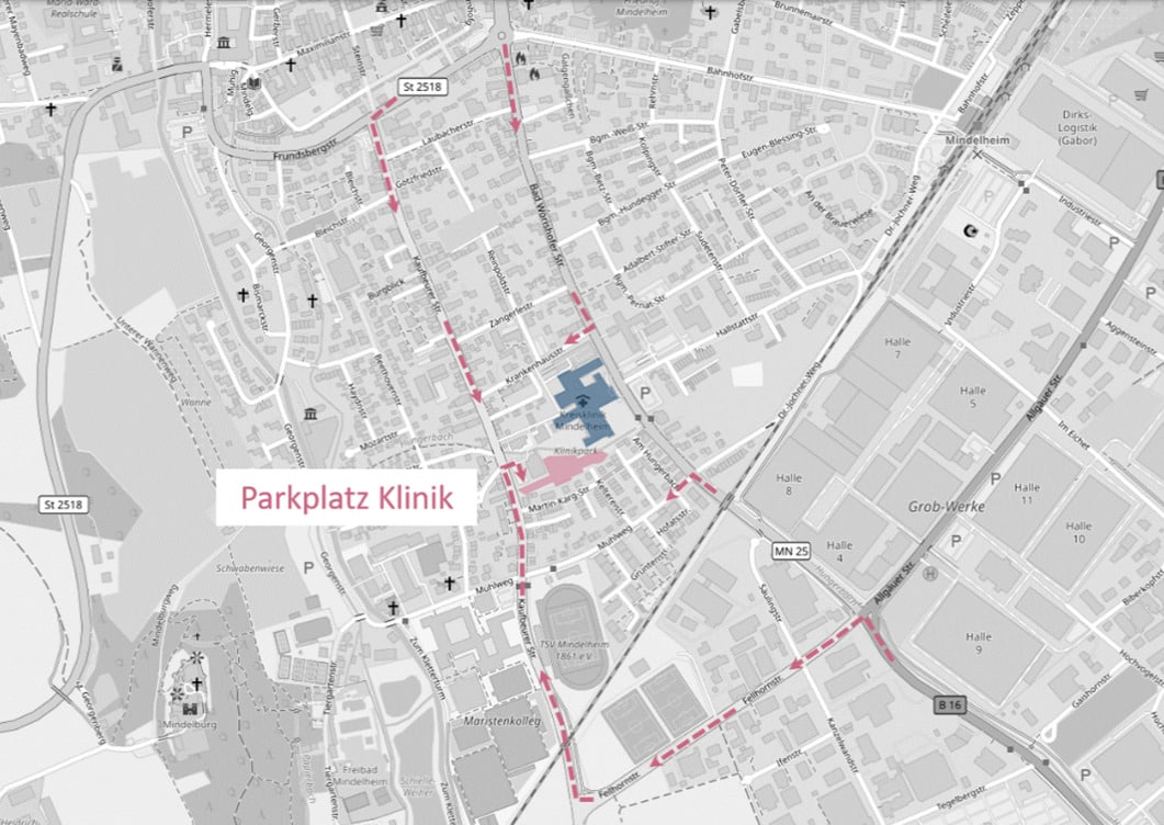 Um weiterhin das Parken an der Klinik zu ermöglichen wurde ein neuer Parkplatz auf dem Parkgelände der Klinik geschaffen. Dieser neue Parkplatz wird über die Kaufbeurer Straße zu erreichen sein. Zur Verkehrsentzerrung in den schmalen Straßen soll die Kaufbeurer Straße wiederrum über die Fellhornstraße und die Frundsbergstraße angefahren werden. Der Parkplatz ist sowohl seitens der Stadt als auch auf dem Klinikgelände seitens der Klinik ausgeschildert. Der neue Parkplatz geht ab dem 08. März in Betrieb und bietet Mitarbeitern und Besuchern kliniknahe Parkplätze. Die Wegeführung zur Klinik erfolgt durch das Parkgelände in Richtung der Bad Wörishofer Straße. Von dort gelangen die Patienten, Besucher und Mitarbeiter an den Haupteingang der Klinik.