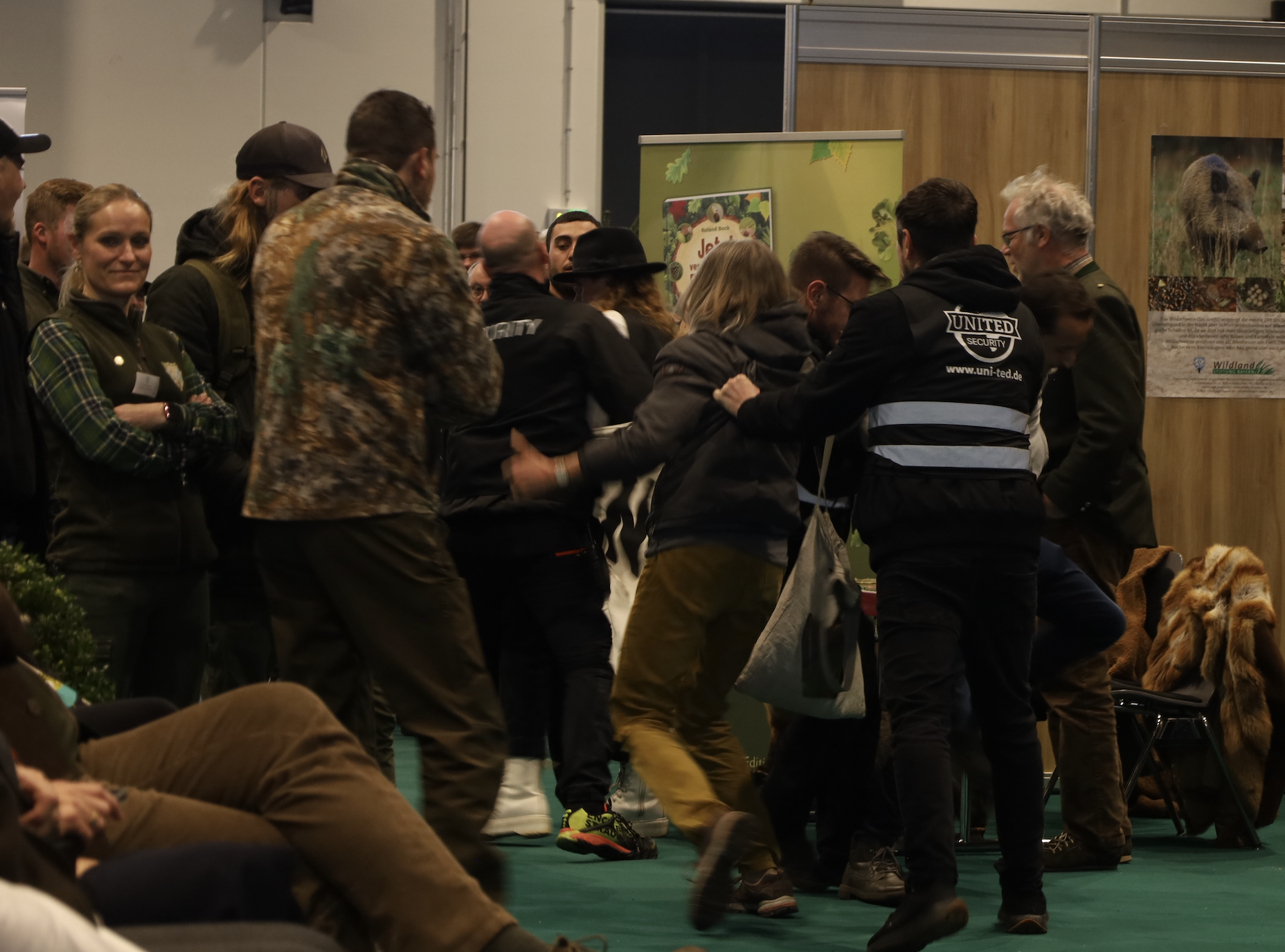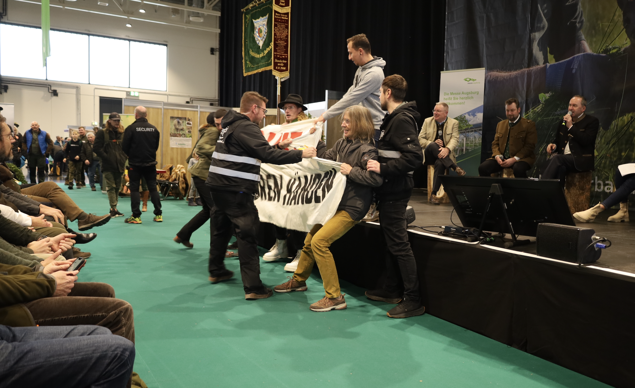 Als Aiwanger, der Schirmherr der Messe, das Abschlusswort halten wollte, wurde die Veranstaltung jedoch durch eine Störaktion von Aktivisten der Organisation Animal Rebellion unterbrochen. Vier Personen stürmten lautstark die Bühne und entrollten ein Banner mit der Aufschrift „Blut an euren Händen“. Mit ihrer Aktion wollten die Aktivisten auf die aus ihrer Sicht bestehende systematische Gewalt bei der Jagd sowie die Umweltzerstörung durch die Fischerei aufmerksam machen.