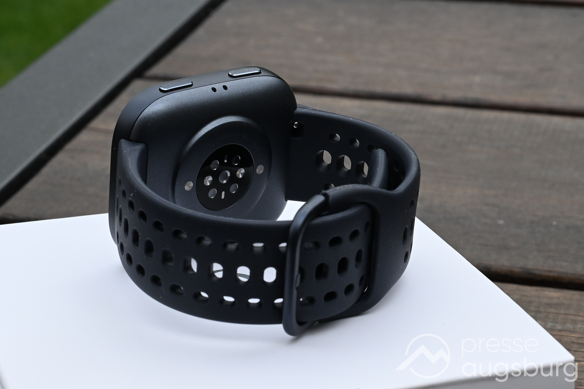 Optisch erinnert die Bip 6 stark an die Apple Watch. Das kantige Gehäuse mit abgerundeten Ecken und das rechteckige Display lassen keinen Zweifel an der Inspirationsquelle. Der große Unterschied: Der Preis bleibt mit unter 80 Euro erfreulich niedrig. Trotz der Budget-Klasse wirkt die Uhr ordentlich verarbeitet und liegt mit ihren rund 43 Gramm angenehm leicht am Handgelenk.