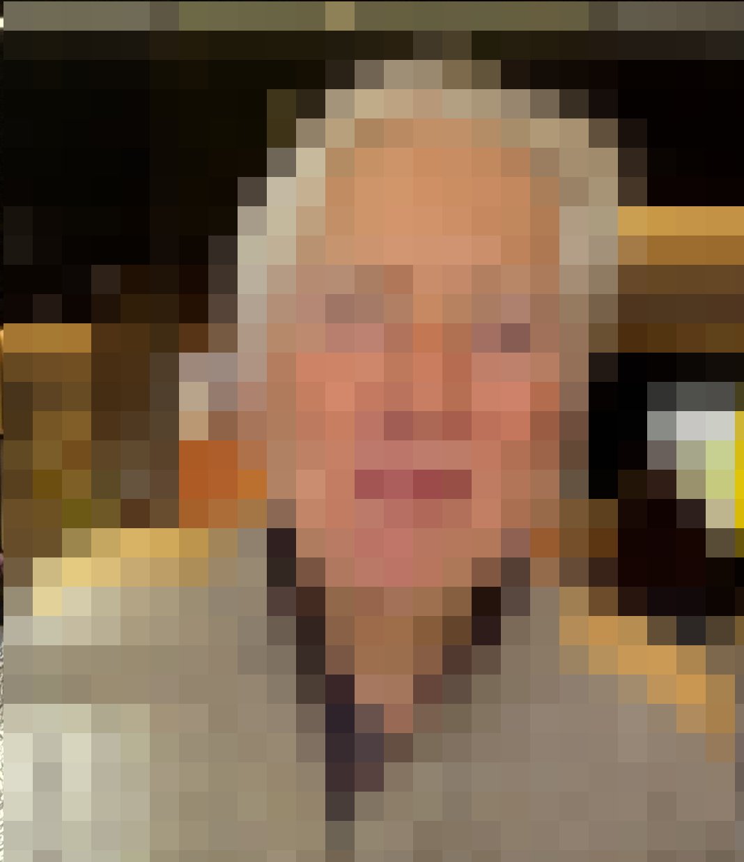 - rosa Hemd, hellgraue Strickjacke mit gelben Schulterbesätzen, schwarze Hose