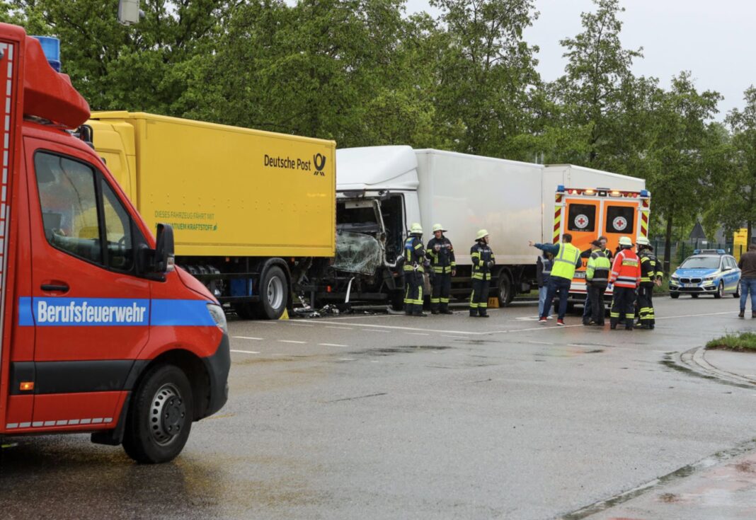 Gegen kurz nach 13 Uhr kam es heute auf der Stuttgarter Straße in Augsburg auf Höhe des Ikea-Markts zu einem schweren Verkehrsunfall zwischen zwei Lastkraftwagen. Ein Speditions-LKW fuhr aus bislang ungeklärter Ursache auf einen vorausfahrenden Post-LKW auf.