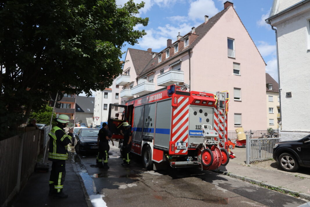 Heute gegen 14 Uhr wurde die Berufsfeuerwehr Augsburg gemeinsam mit den Freiwilligen Feuerwehren aus Oberhausen und Göggingen zu einem Zimmerbrand in die Dußmannstraße gerufen. Auch der Rettungsdienst und die Polizei waren im Einsatz.