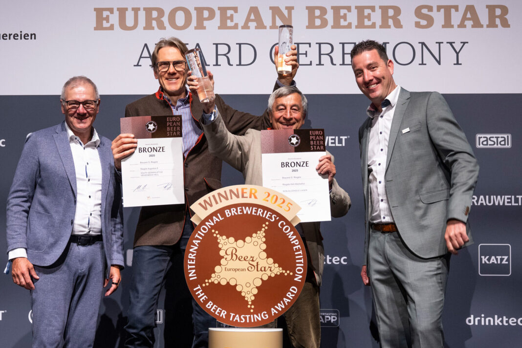 Großer Erfolg für die Riegele BierManufaktur: Im Rahmen der International Congress Center Messe in München wurde gestern der „European Beer Star“ vergeben. Diese prestigeträchtige Auszeichnung bei einem der weltweit bedeutendsten Bier-Wettbewerbe ging 2025 an gleich zwei Riegele Biere: Das Riegele Hell Alkoholfrei sowie das Augustus 8 konnten jeweils Bronzemedaillen erringen.