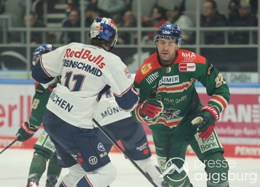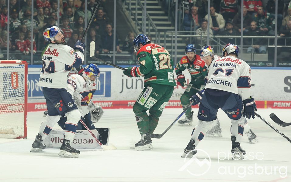 Die Augsburger Panther haben das vierte und letzte Saisonduell in der DEL gegen den EHC Red Bull München mit 2:4 verloren. Trotz einer über weite Strecken engagierten Leistung musste der AEV einen Rückschlag im Rennen um Rang zehn hinnehmen.Die Treffer für Augsburg erzielten Moritz Elias und Cody Kunyk, für München waren Ryan Murphy, Maximilian Kastner, Markus Eisenschmid und Tobias Rieder erfolgreich.