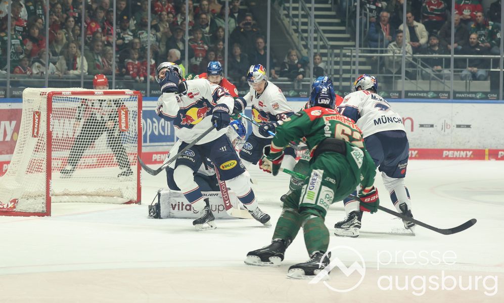 Trainer Bill Peters musste kurzfristig auf Tim Wohlgemuth verzichten, konnte aber wieder auf Alexandre Grenier zurückgreifen. Augsburg startete druckvoll, erspielte sich im ersten Drittel gute Chancen und hatte Vorteile, doch Münchens Torhüter Antoine Bibeau verhinderte mehrfach die Führung.