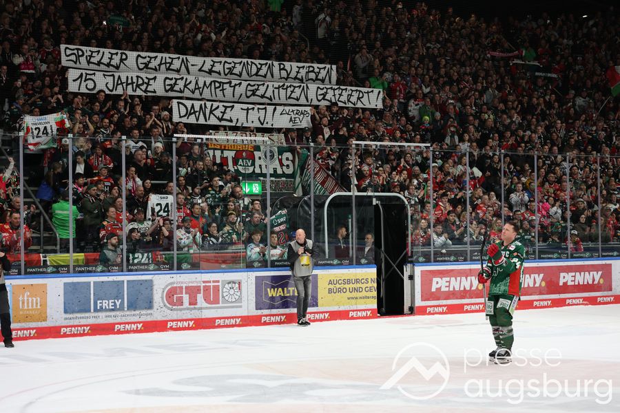 Trotz der Niederlage stand am Ende noch einmal T.J. Trevelyan im Mittelpunkt. Die Fans im ausverkauften Curt-Frenzel-Stadion feierten die Panther-Legende nach ihrem letzten Spiel im Augsburger Trikot mit langanhaltendem Applaus.