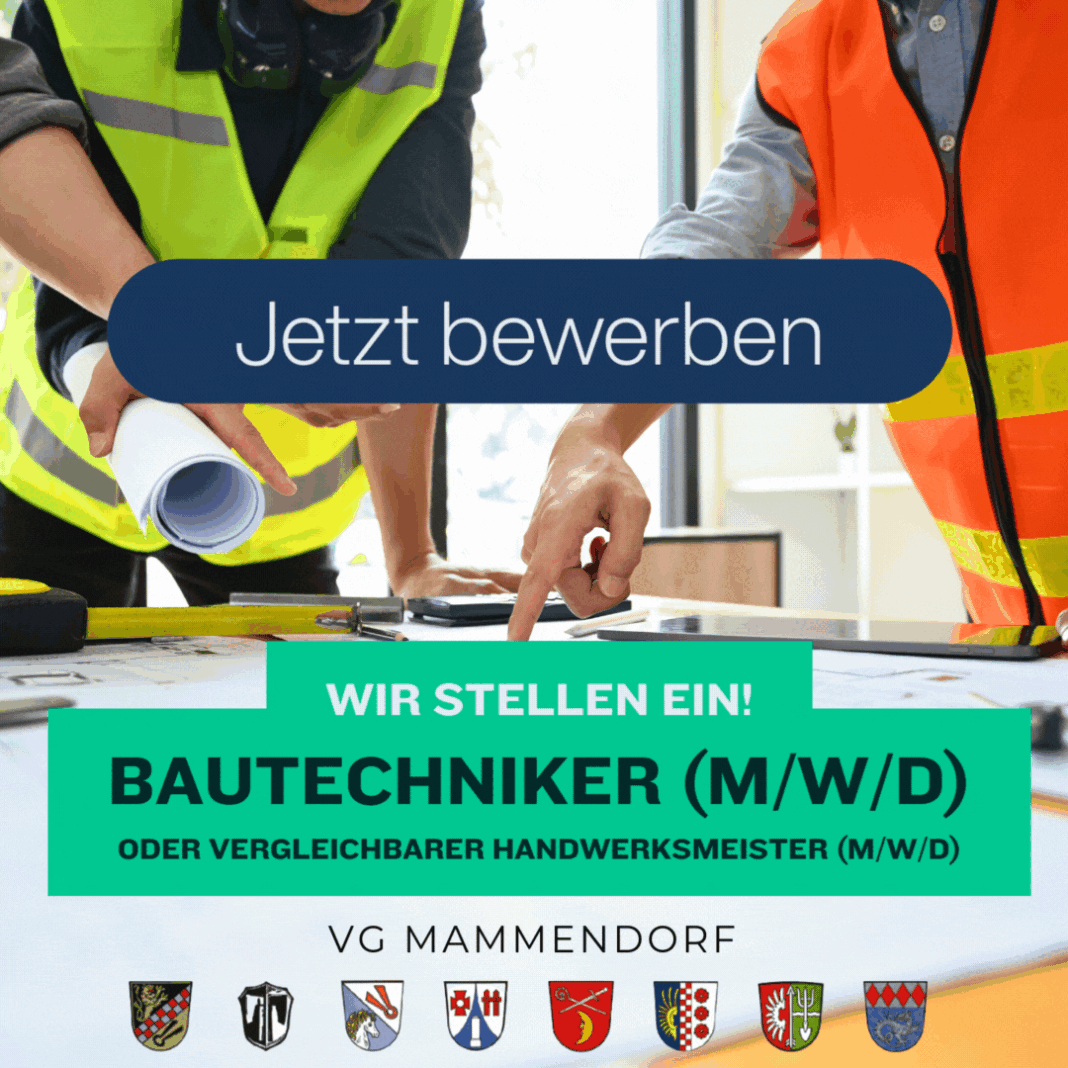 Die Verwaltungsgemeinschaft Mammendorf sucht möglichst zum 01.07.2026 unbefristet und in Vollzeit Bautechniker (m/w/d) oder vergleichbare Handwerksmeister (m/w/d).