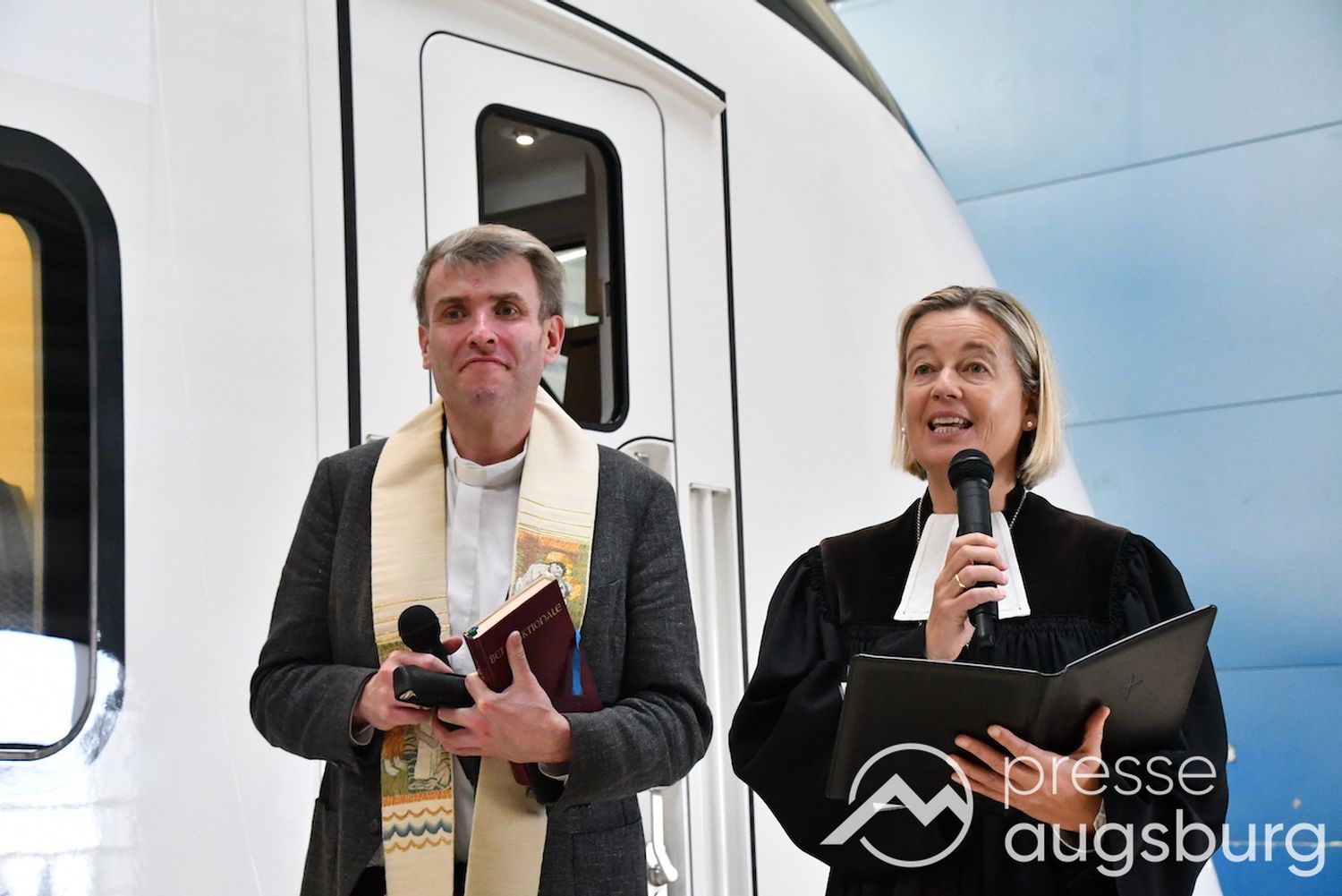 Die feierliche Präsentation fand im Beisein hochrangiger Gäste statt, unter ihnen waren Bayerns Verkehrsminister Christian Bernreiter, Karl Blaim von Siemens Mobility und Florian Reuter, Geschäftsführer der DB Energie GmbH. Ein Höhepunkt des Programms war die Segnung des Zuges um 11:45 Uhr, bei der auch der Schriftzug enthüllt und die Taufurkunden an die Paten übergeben werden.