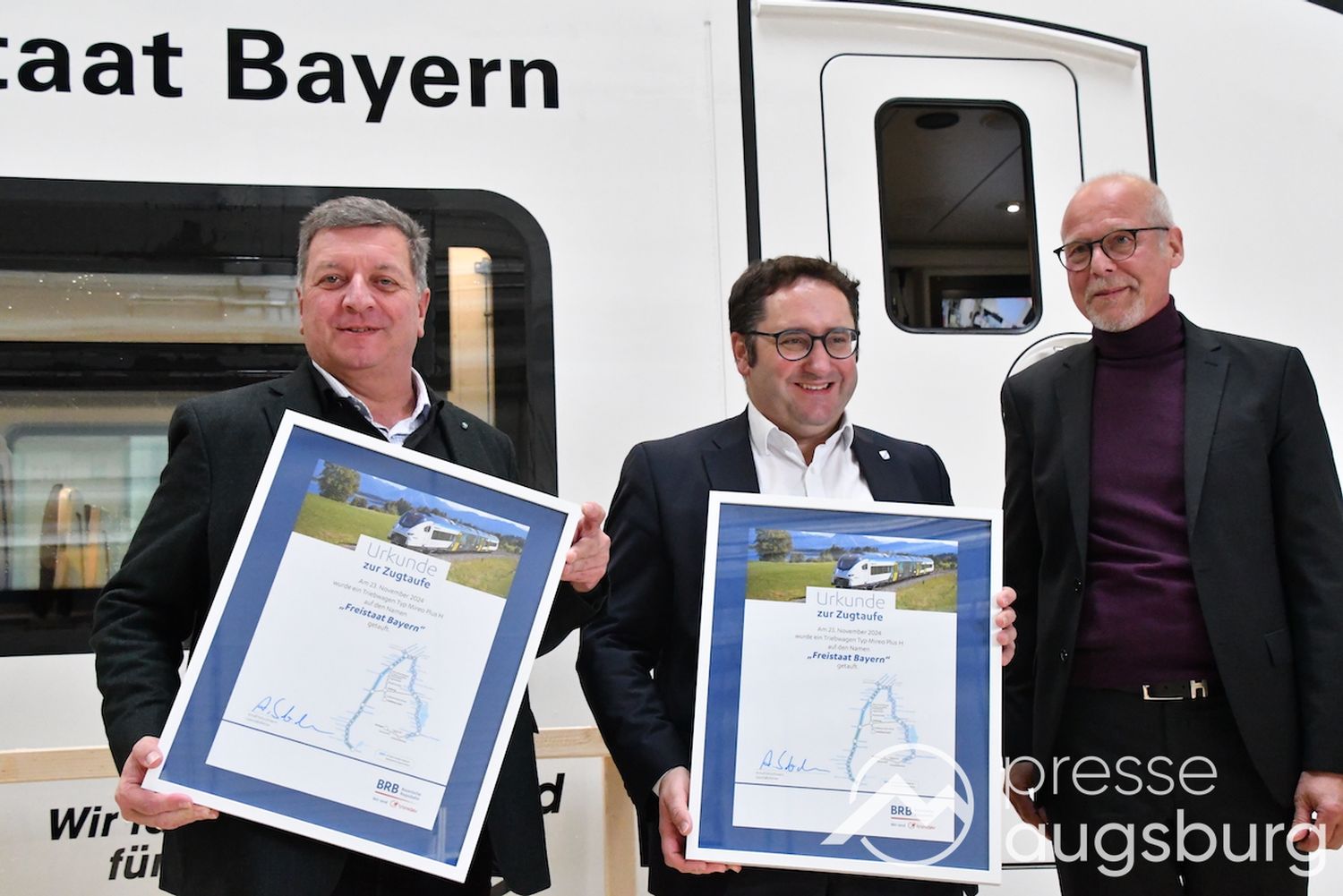 Am Samstag, den 23. November 2024, wurde im Bahnbetriebswerk der Bayerischen Regiobahn (BRB) in Augsburg ein bedeutender Meilenstein in der bayerischen Verkehrsgeschichte gefeiert: die Präsentation des ersten Wasserstoffzugs Bayerns, des Mireo Plus H.
