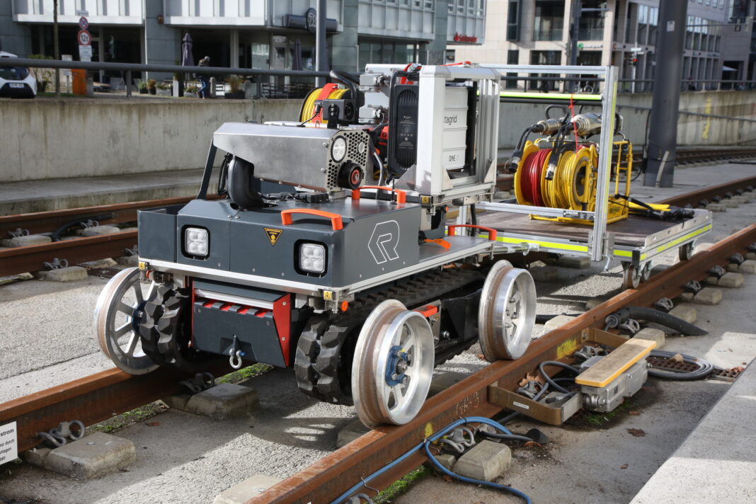 Der Löschroboter ist Teil des neuen Abrollbehälters „Schienenunfall“, der in Kürze offiziell in Dienst gestellt wird. Auch dieses Projekt wurde von den Stadtwerken mitfinanziert, da die Berufsfeuerwehr Augsburg für das Eingleisen entgleister Straßenbahnen zuständig ist.