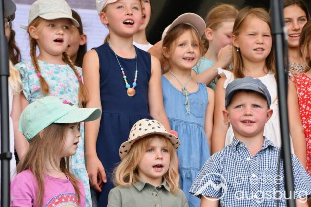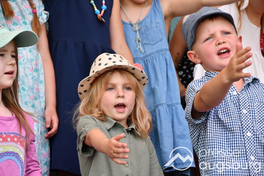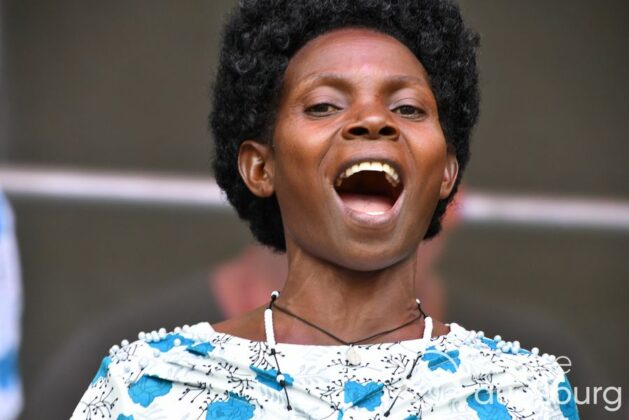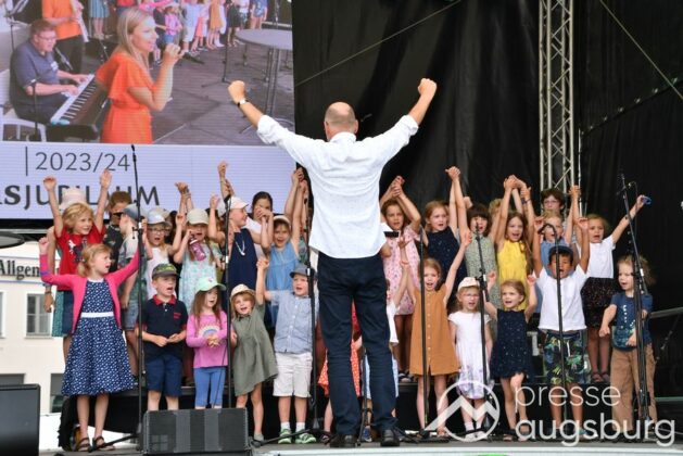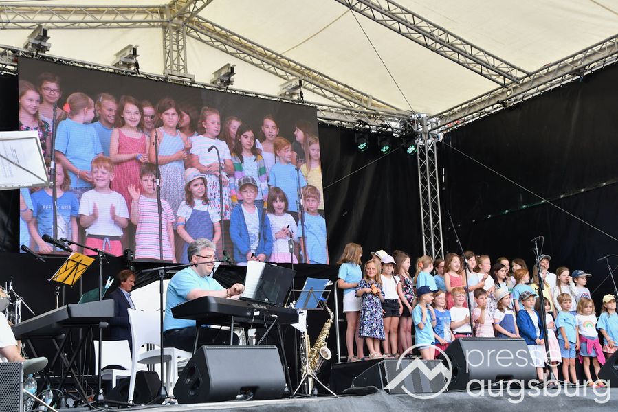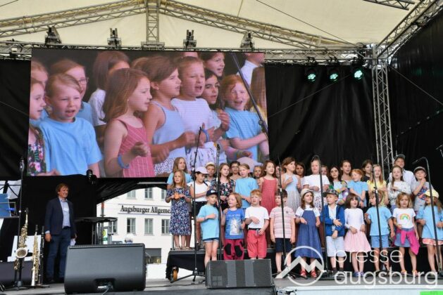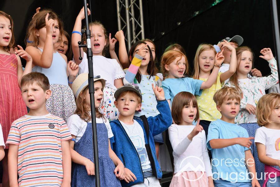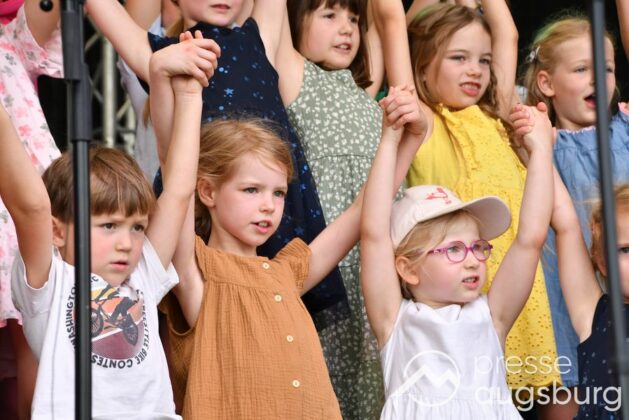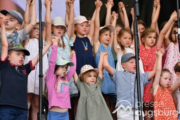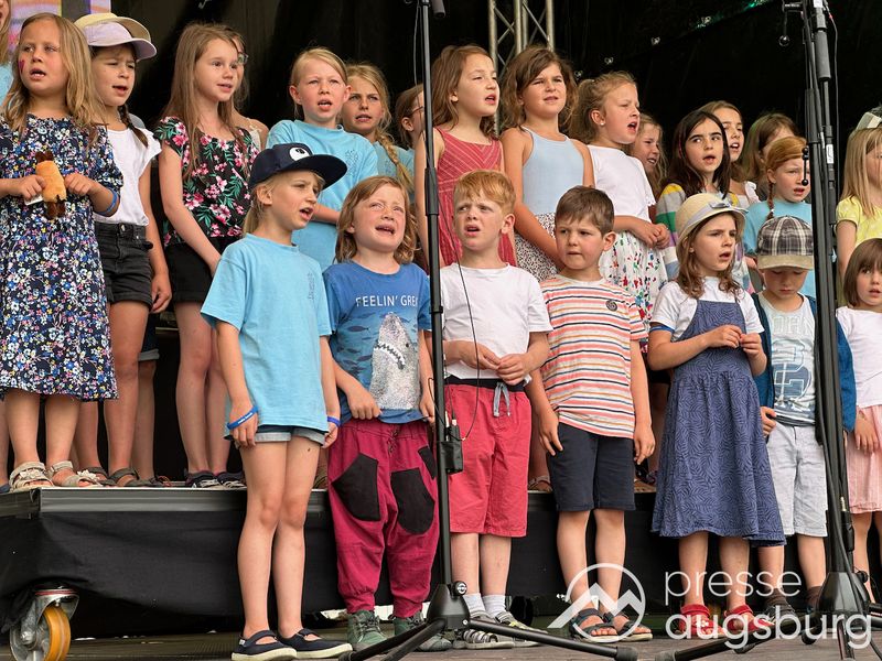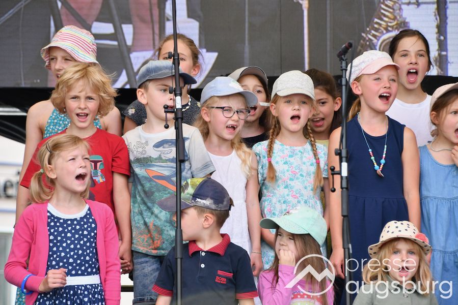 Wer die Ruhe suchte, der war auf dem Rathausplatz beim Auftaktfest an falscher Stelle. Denn still war es den Vormittag über so gut wie nie. So sorgte gleich zu Beginn das eigens komponierte Ulrichslied von Musikkomponist Robert Haas mit Band für gute Stimmung. Auch mehrere Kinderchöre und Chöre sowie ein Blasorchester hatten sich ein abwechslungsreiches musikalisches Programm überlegt. Bunte und weltkirchliche Rhythmen waren spätestens zu hören, als ein Chor aus Uganda auftrat. Ausgerüstet mit Trommeln und bunten Gewändern sorgten die Sängerinnen und Sänger für ein Gefühl von Afrika mitten in Augsburg. Jubelnder Beifall war die Antwort des Publikums.