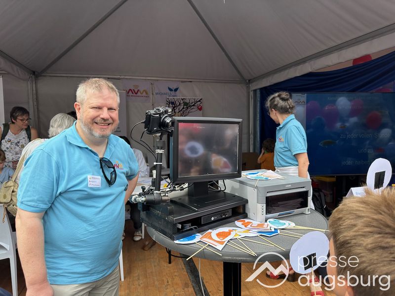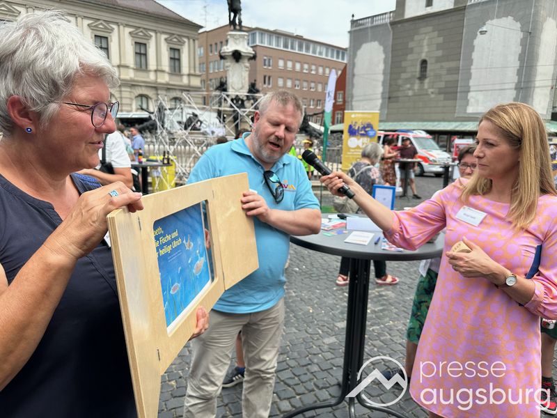 Wer bei dieser Fülle an Ständen den Überblick verlor, erhielt durch die Zuschaltung von Livereporterin Birgit Geiß von katholisch1.TV einen Einblick in ausgewählte Präsentationen. Anhand von Attributen des Heiligen stellten die Verantwortlichen vor, wie ein Handeln im Sinne von Ulrich in ihrer jeweiligen Einrichtung oder Abteilung umgesetzt wird.