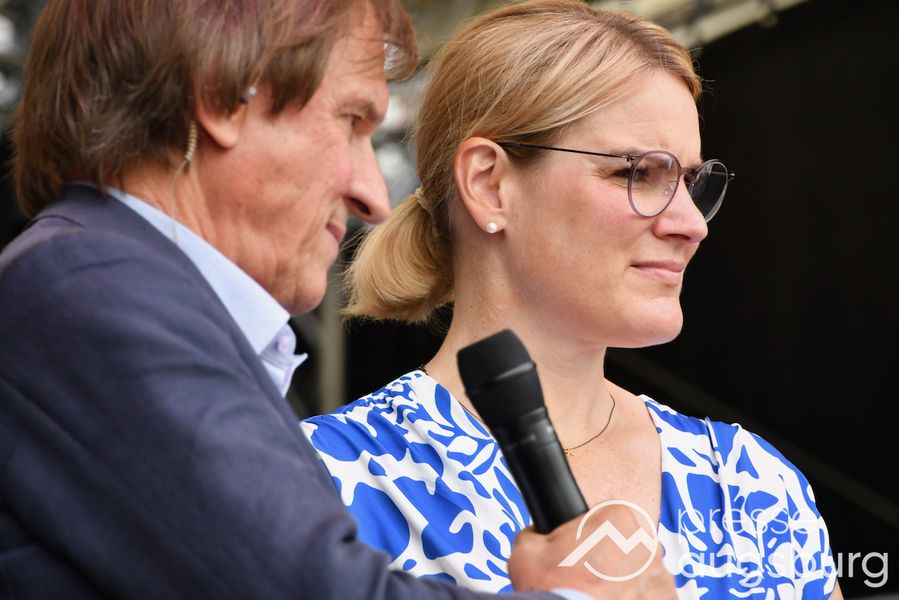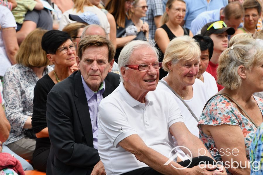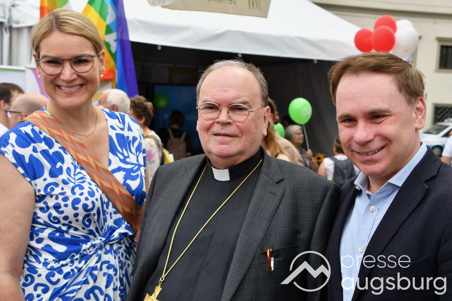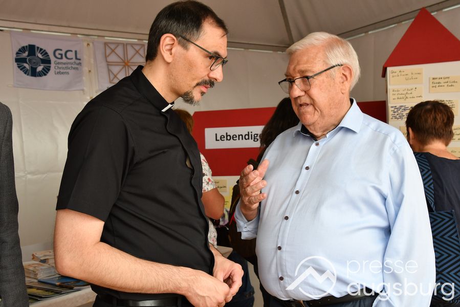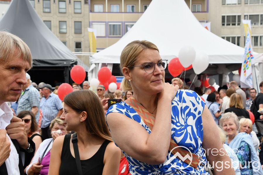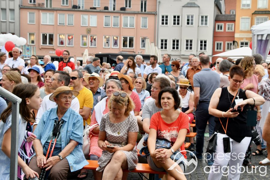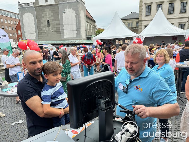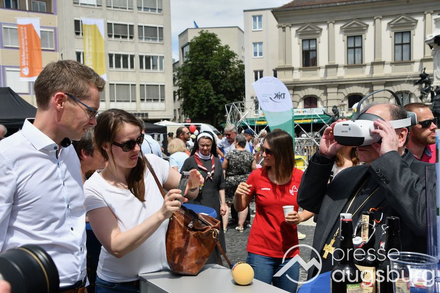 „Feiern können die Augsburger. Dass wir hier ein Familienfest daraus gemacht haben, ist großartig“, zeigte sich auch die Oberbürgermeisterin begeistert von den vielfältigen Ständen und dem bunten Bühnenprogramm. Der hl. Ulrich sei für sie nicht nur Stadtpatron, sondern auch ein Mensch, der Gutes gewirkt habe, zutiefst menschlich gewesen sei und dem man nacheifern könne. „Insofern sind die Werte, die Ulrich verkörperte, auch heute noch hochaktuell“, so Weber. Als „Stachel im Fleisch“ bezeichnete Bischof Bertram den Heiligen, der für ihn Vorbild sei. Ulrich habe gezeigt, dass Glaube erst dann Hand und Fuß habe, wenn er zur Tat werde. Karitatives, Bildung und Soziales hätten deshalb auch im Bistum Augsburg Priorität, betonte der Bischof bei strahlendem Sonnenschein und blauem Himmel.