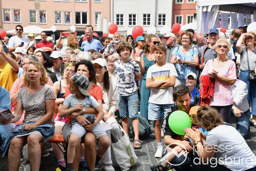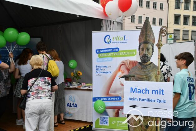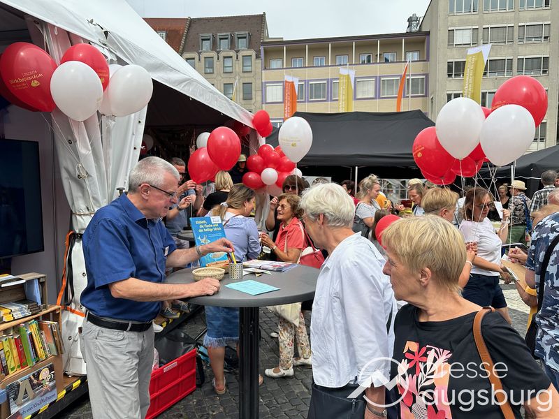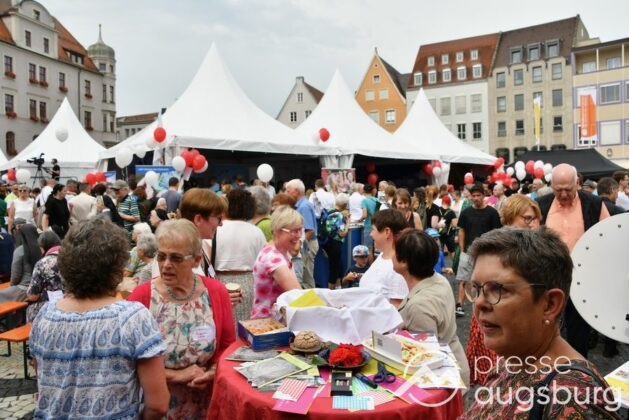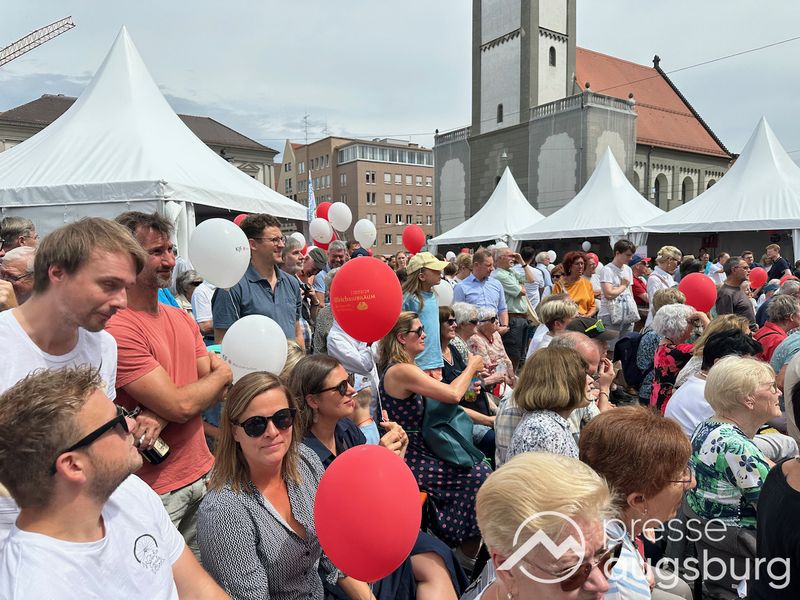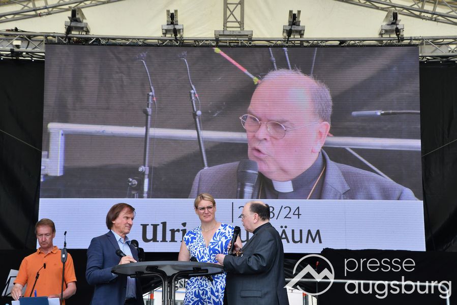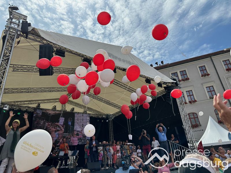 Gemeinsam gaben Bischof Dr. Bertram Meier und Oberbürgermeisterin Eva Weber vor fast 1000 Menschen den Startschuss für die einjährigen Feierlichkeiten rund um den Bistums- und Stadtpatron. Neben einem großen Bühnenangebot und Mitmachaktionen für Jung und Alt stellten sich bis in den frühen Nachmittag rund 40 kirchliche Einrichtungen näher vor. Luftballons mit Bitten an den hl. Ulrich färbten den Himmel für einen kurzen Moment in „rot-weiß“ und trugen die Begeisterung für den Heiligen über die Stadtgrenzen hinaus.