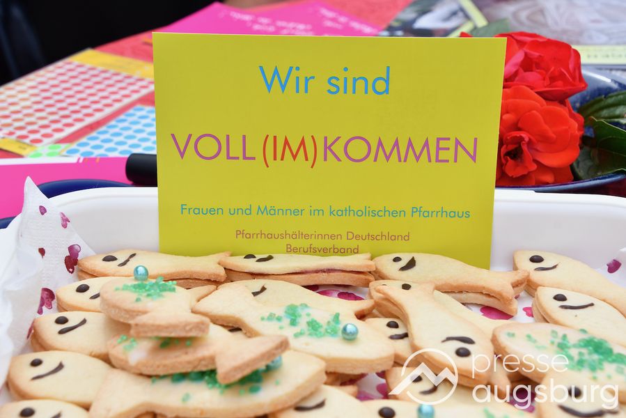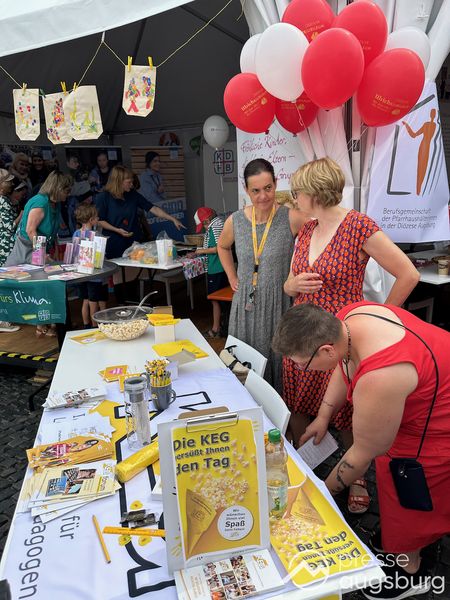 Sowohl an den Ständen als auch auf der Bühne schien dies in die Tat umgesetzt zu werden: Zahlreiche Verbände, soziale Einrichtungen sowie Seelsorgeabteilungen des Bistums präsentierten sich informativ und kreativ. So gab es für Kinder unterschiedliche Bastel- und Malaktionen, Wurfspiele und Rätselaufgaben, einen Kicker für die sportliche Herausforderung sowie eine Pflanzaktion der Behinderteinrichtungen im Caritasverband der Diözese Augsburg.