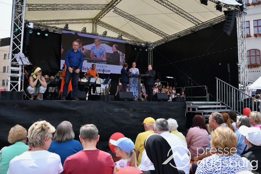 Sich vor der Kamera zu präsentieren, war an diesem Tag nicht nur Ausgewählten vorbehalten. So konnten sich Besucherinnen und Besucher am Filmprojekt „Uli und Du“ beteiligen und hatten damit die Chance, beim längsten Ulrichsfilm aller Zeiten dabei zu sein. Dabei galt es darzustellen, was man persönlich mit dem Heiligen verbindet. Wer die Chance beim Auftaktfest verpasst hat, kann sich an der Aktion noch das ganze Jahr über beteiligen (https://www.uli-und-du.de/).