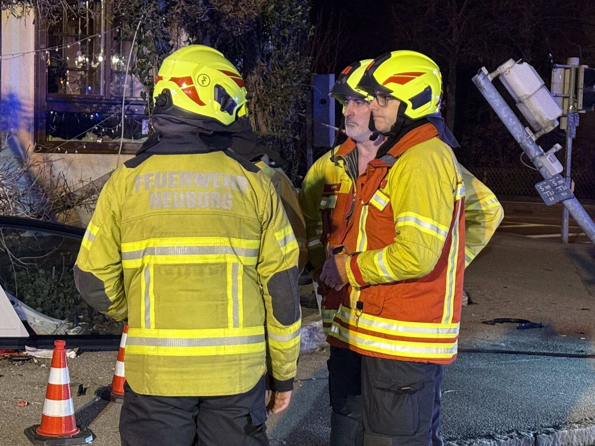 Neben der zerstörten Ampel hatte der Bus einen Stromverteilerkasten getroffen. „Dadurch bestand die Gefahr eines Stromschlags“, erklärt Markus Rieß, Kommandant der Freiwilligen Feuerwehr Neuburg. Um die Unfallstelle zu sichern, leuchteten die Einsatzkräfte das Gebiet großflächig aus und bereiteten die Bergung des Busses vor. „Es ist mit Sicherheit nicht einfach, den Reisebus jetzt von dieser Gartenmauer zu lösen“, ergänzt Kult.