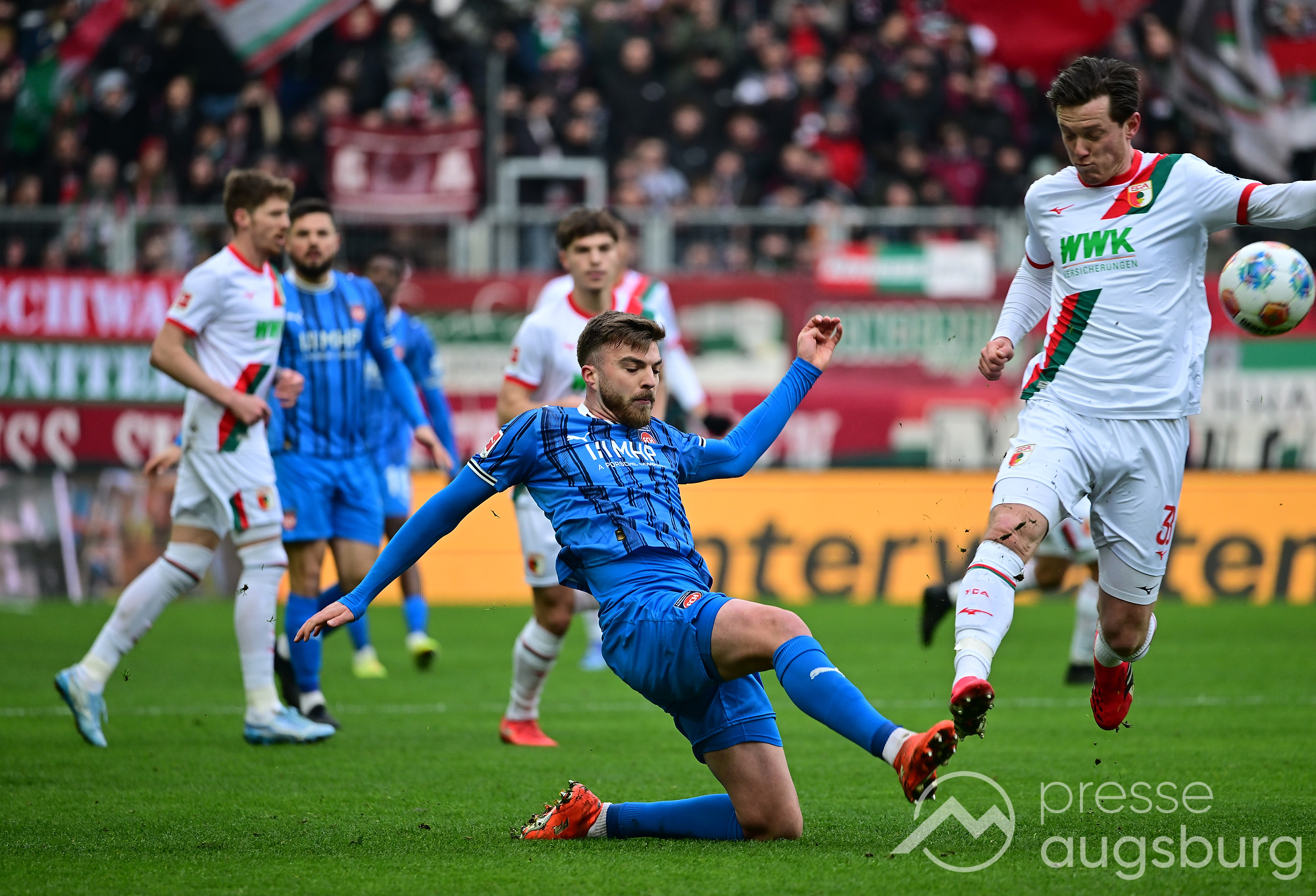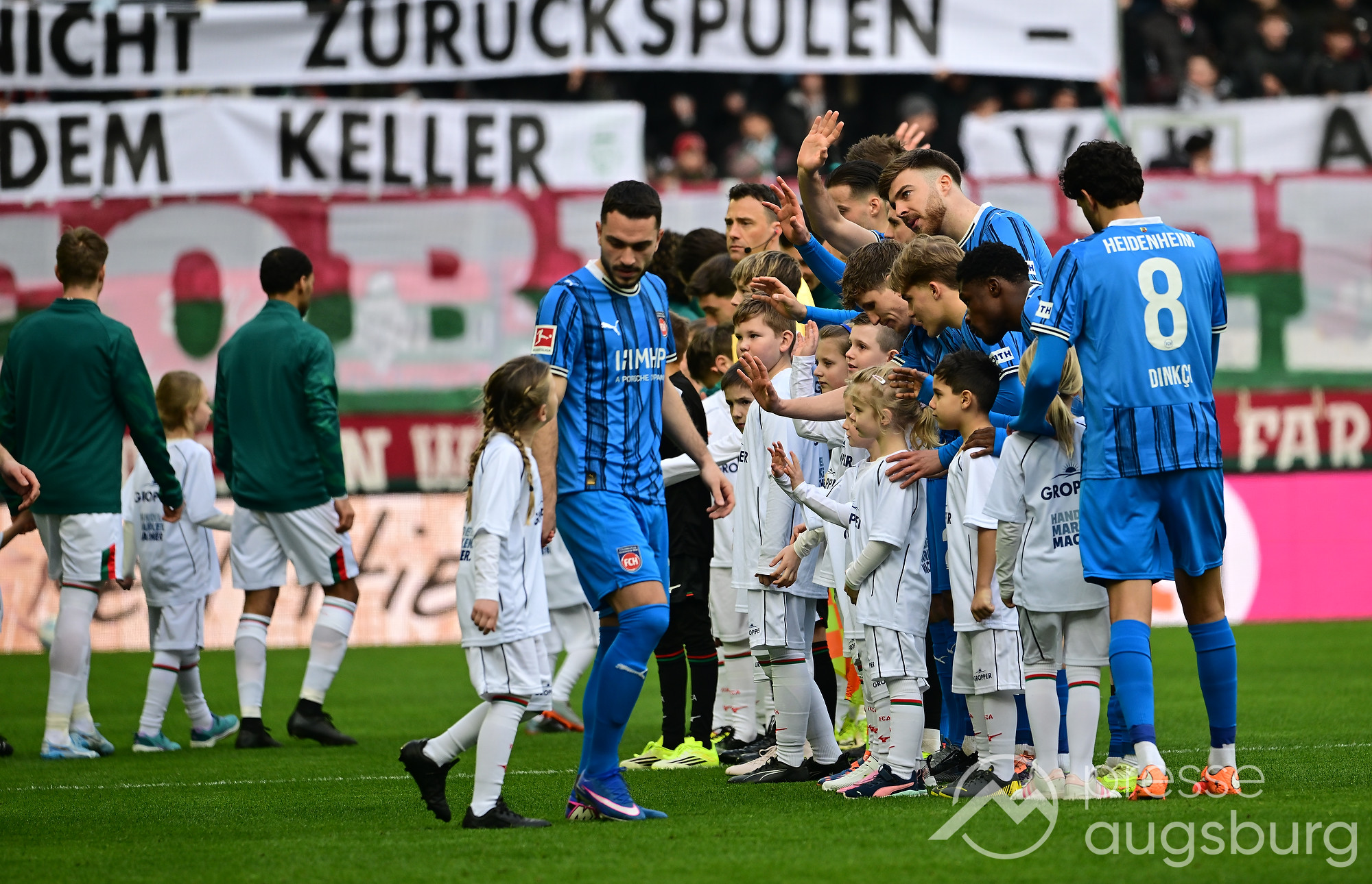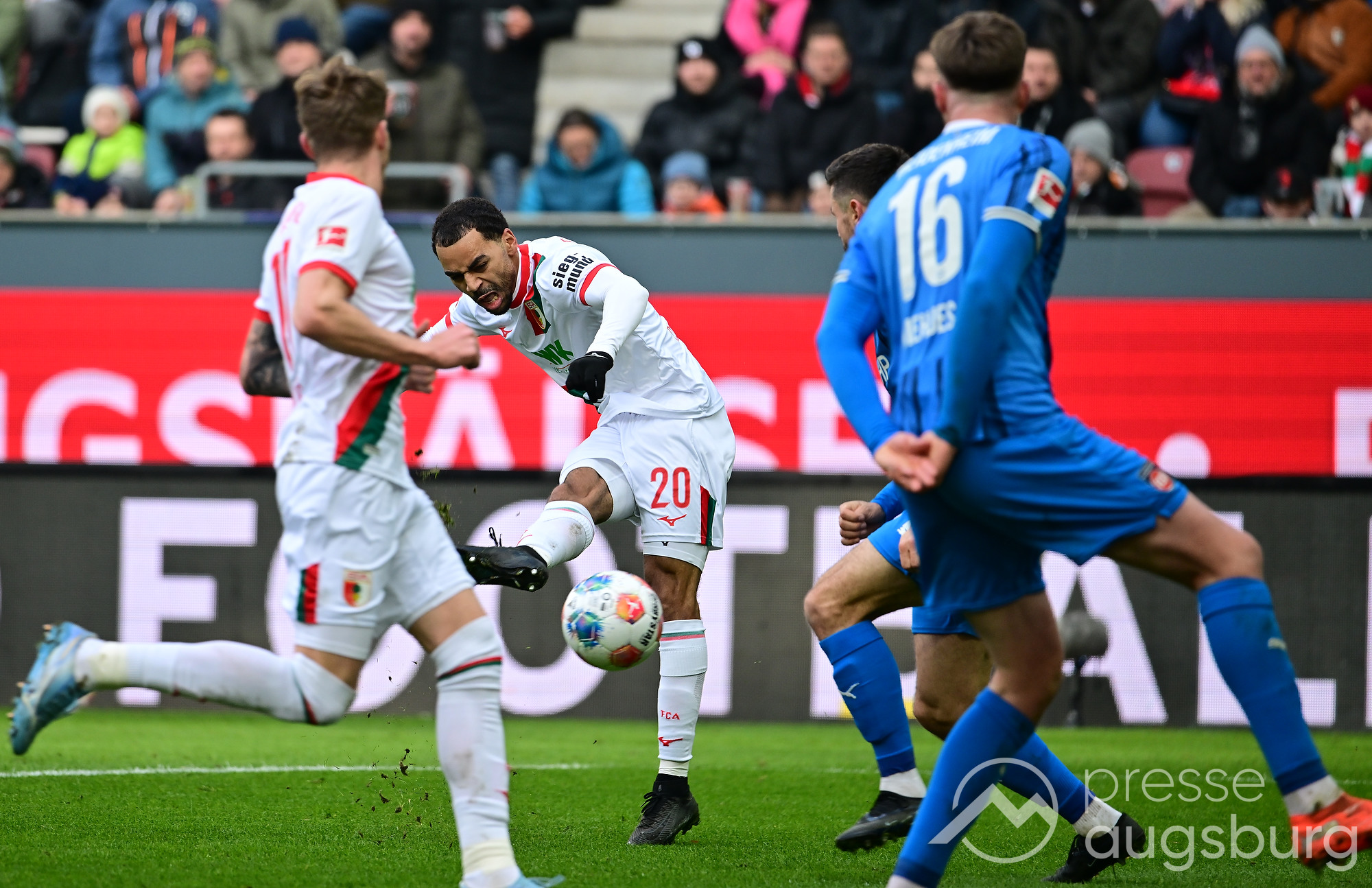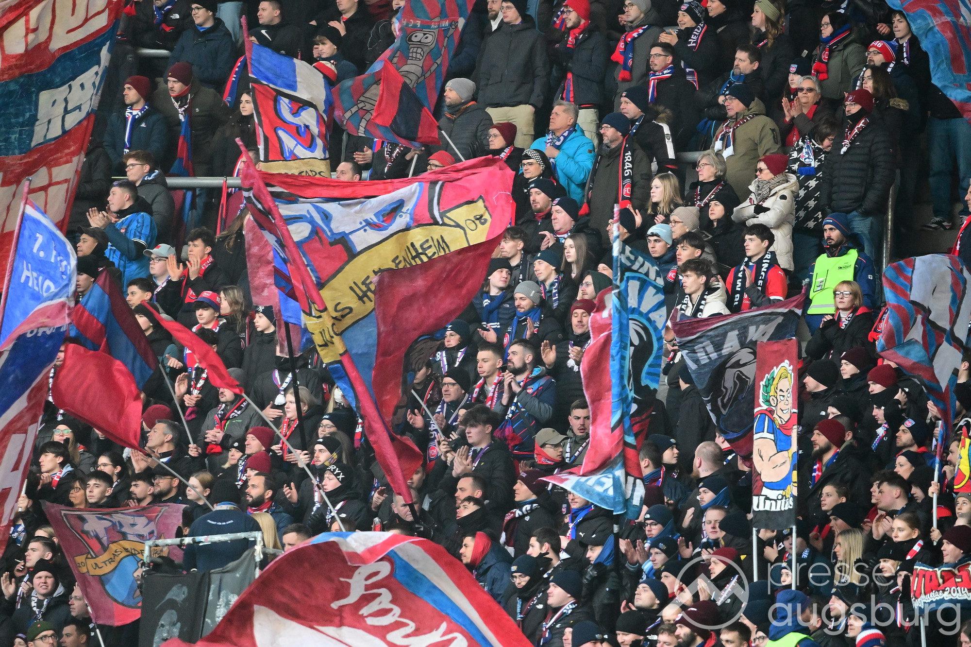 Kurz vor der Pause drückte der FCA das Spiel noch etwas weiter nach vorne, zwingende Möglichkeiten blieben jedoch Mangelware. Ein weiter Einwurf der Gäste brachte ebenso wenig Gefahr wie mehrere Standardsituationen auf beiden Seiten. Der Schiedsrichter pfiff pünktlich zur Halbzeit – in einem Spiel, das bis dahin kaum Höhepunkte geboten hatte. Auf den Rängen sorgten die Augsburger Fans mit zahlreichen Plakaten für Stimmung, während auf dem Platz vor allem Kampf statt Glanz dominierte.