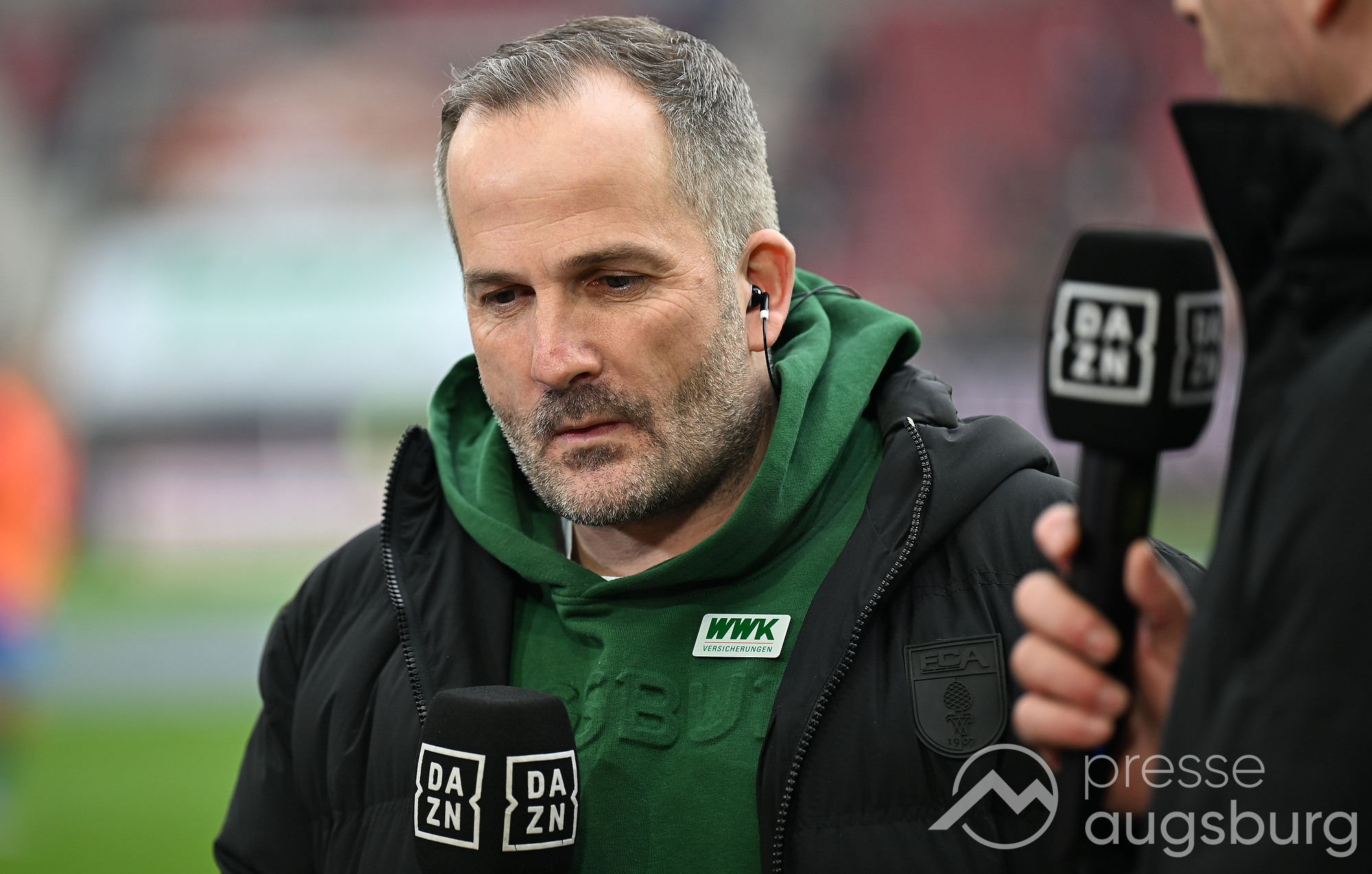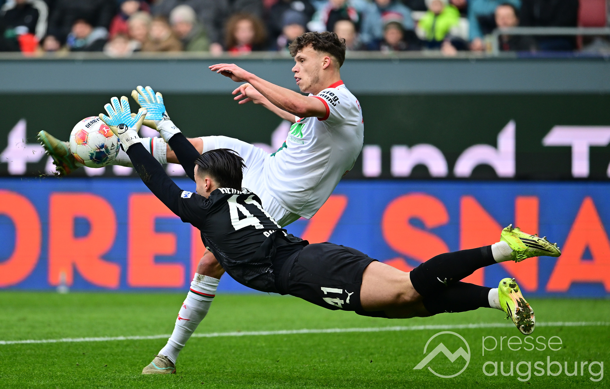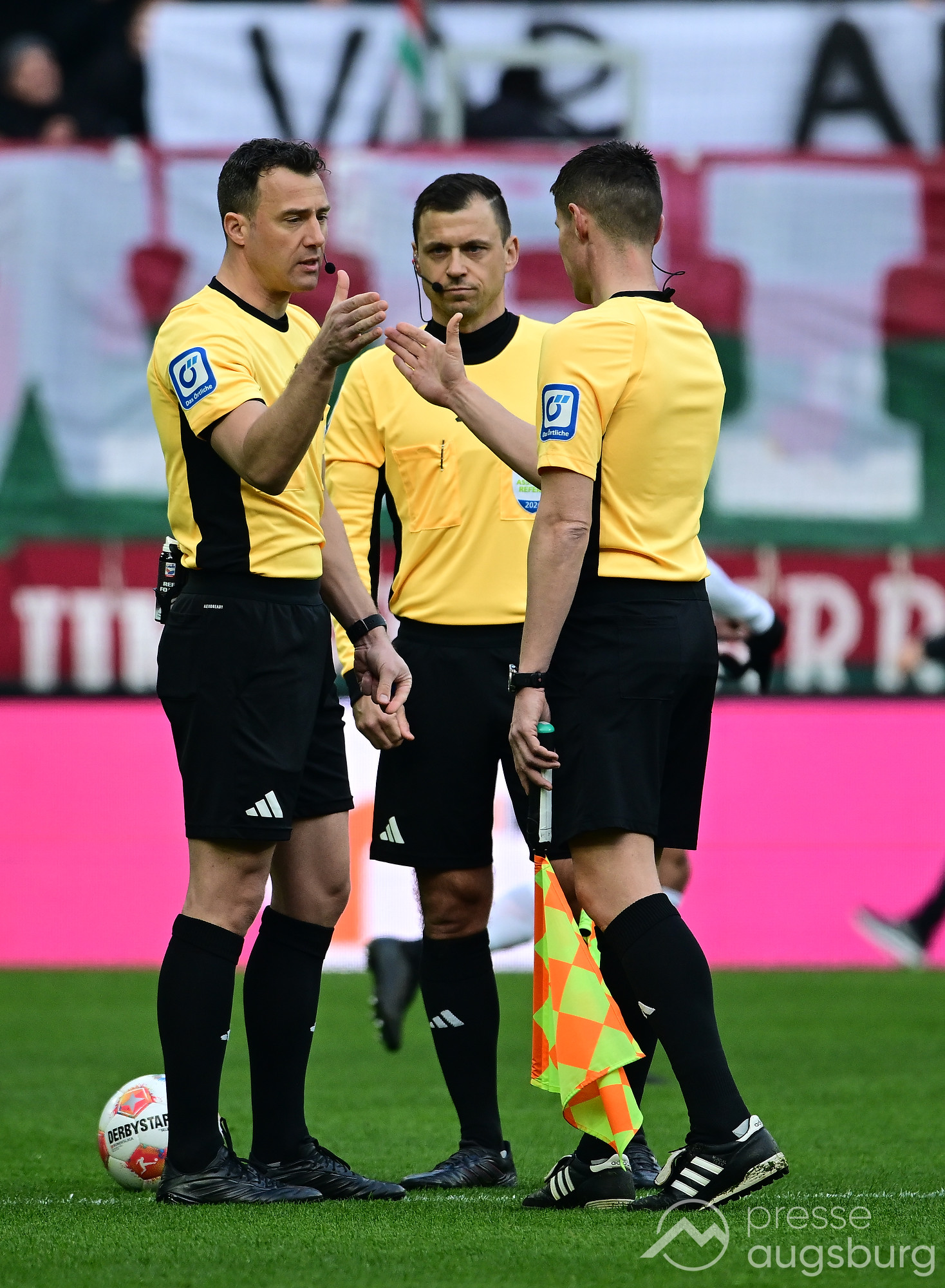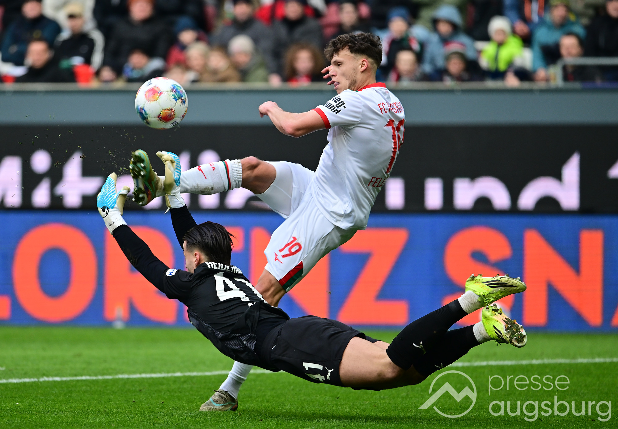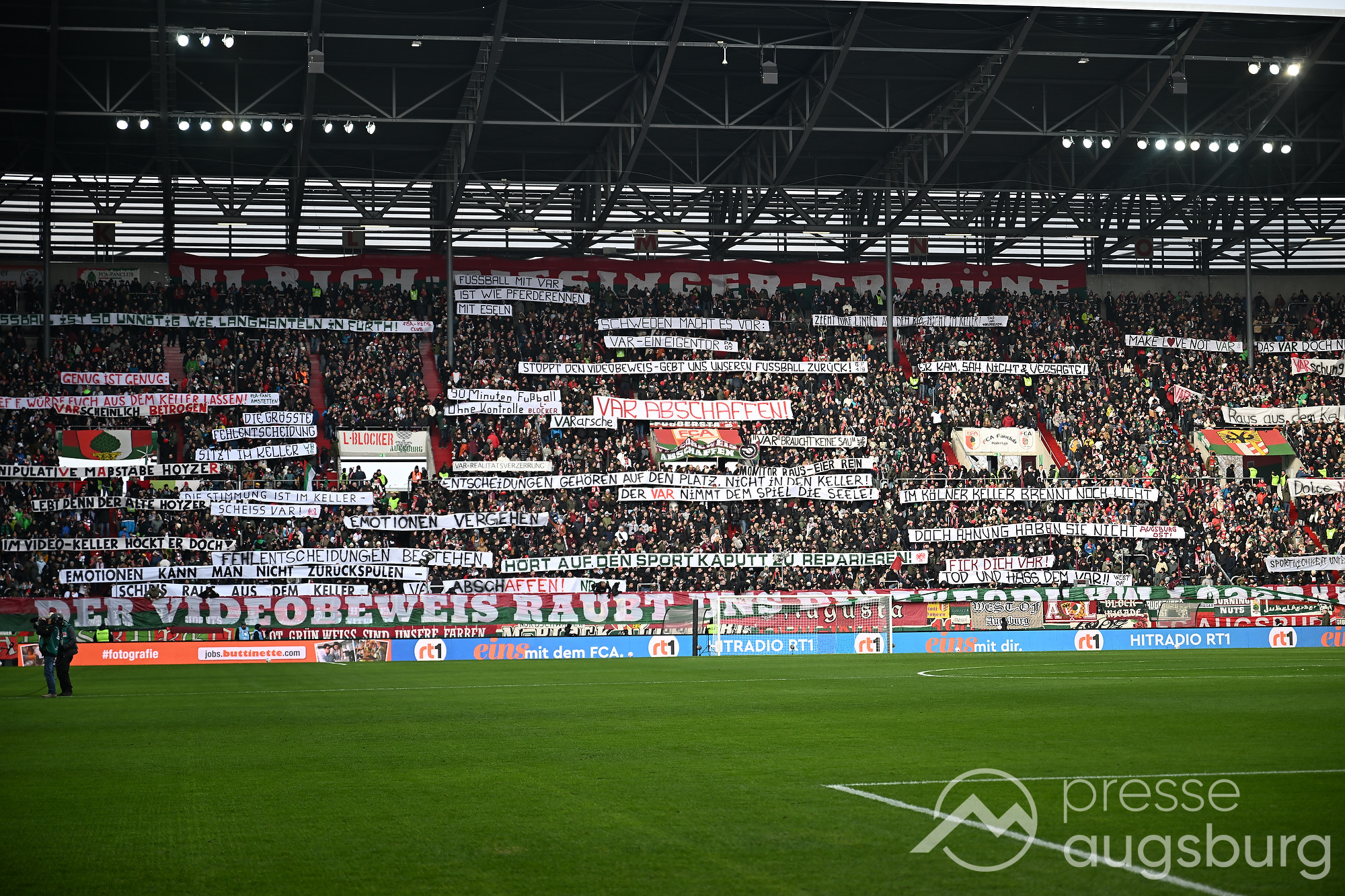 Kurz vor der Pause drückte der FCA das Spiel noch etwas weiter nach vorne, zwingende Möglichkeiten blieben jedoch Mangelware. Ein weiter Einwurf der Gäste brachte ebenso wenig Gefahr wie mehrere Standardsituationen auf beiden Seiten. Der Schiedsrichter pfiff pünktlich zur Halbzeit – in einem Spiel, das bis dahin kaum Höhepunkte geboten hatte. Auf den Rängen sorgten die Augsburger Fans mit zahlreichen Plakaten für Stimmung, während auf dem Platz vor allem Kampf statt Glanz dominierte.