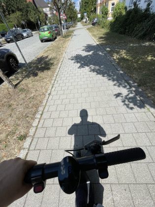 Darüber hinaus überzeugt der E-Scooter STREETBOOSTER Two mit seinem guten Rollverhalten. Möglich machen das die besonders großen 10-Zoll-Luftreifen. Damit kommt man geschmeidig von A nach B, ohne eine ruckelige Fahrt auf sich nehmen zu müssen. Es kommt dabei nicht zu Laufgeräuschen auf dem Asphalt, was von Nutzern besonders gelobt wird. Auch wir hatten im Test keinerlei Probleme und selbst Schotterwege oder kurze Etappen auf Kopfsteinpflaster waren kein Problem.