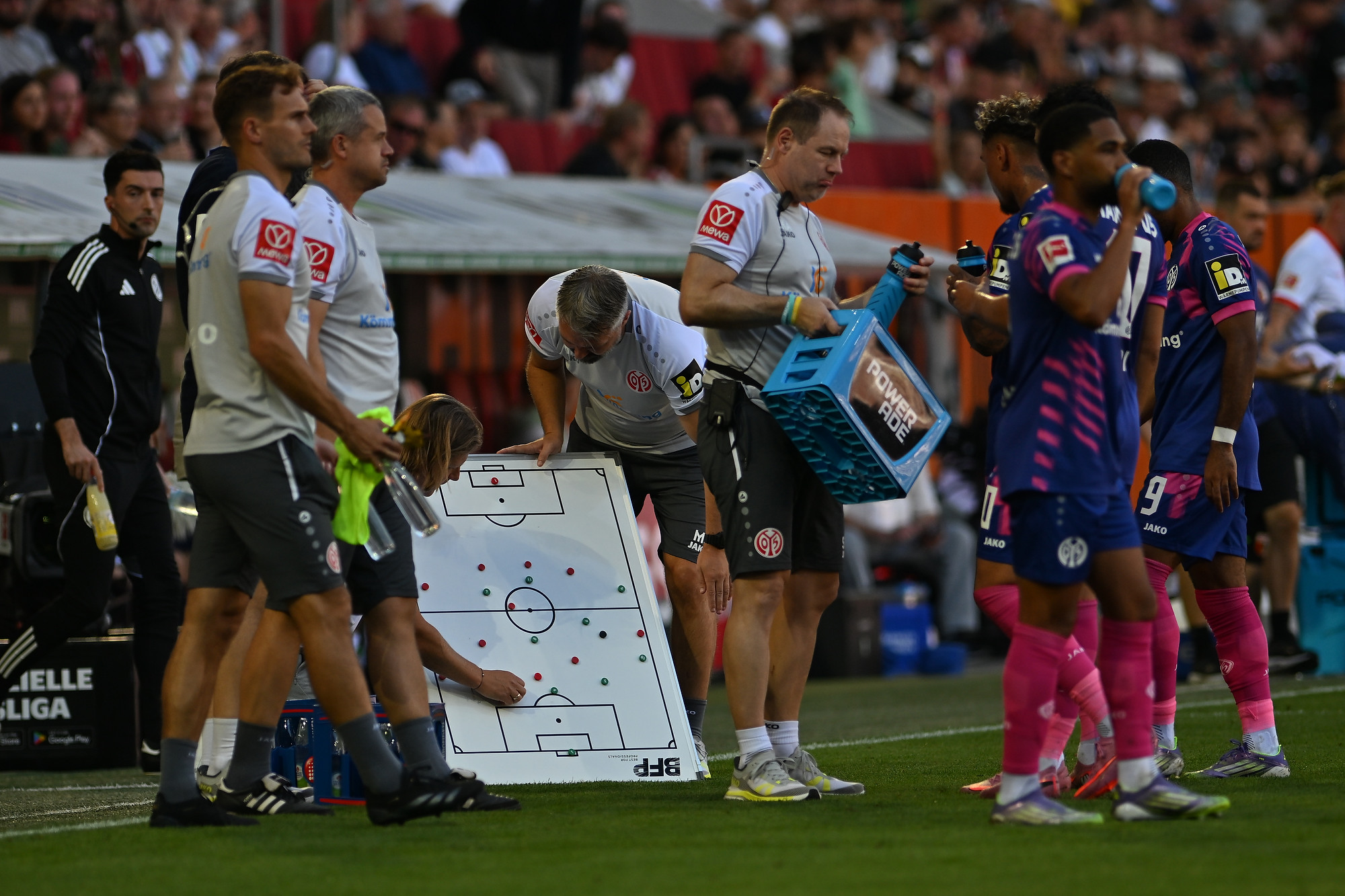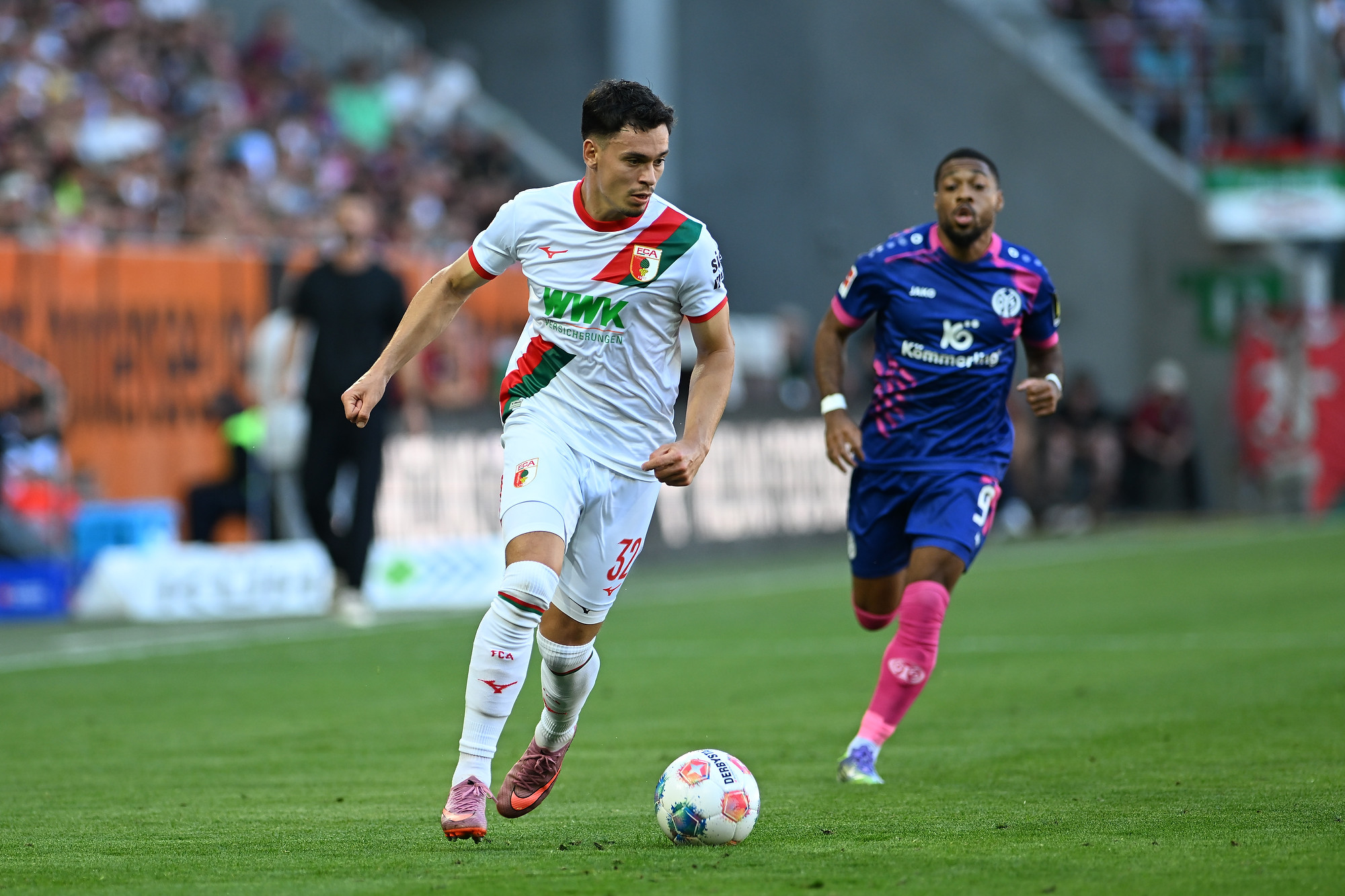 Das Spiel begann mit einer intensiven ersten Hälfte, in der Mainz schnell die Oberhand gewann. Ein fataler Fehlpass von Augsburgs Chrislain Matsima leitete das erste Tor ein: Kaishu Sano schnappte sich den Ball, zog ungestört in den Strafraum und traf aus etwa 20 Metern zum 1:0 für Mainz.