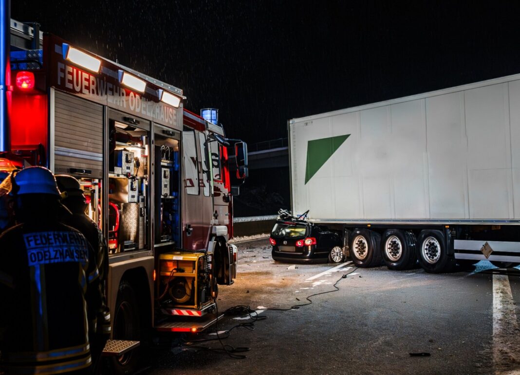 Der Pkw war um 02:05 Uhr gegen das Heck eines querstehenden Sattelzugs gestoßen, der auf der mittleren Fahrspur auf Höhe des Beschleunigungsstreifens der Anschlussstelle Odelzhausen in Fahrtrichtung München stand. Die tödlichen Verletzungen der Insassen des Pkw wurden durch die Wucht des Aufpralls verursacht. Die beiden Personen konnten mittlerweile identifiziert werden. Beim Fahrer (49 Jahre) und dem Beifahrer (48 Jahre) handelt es sich um rumänische Staatsangehörige die sich auf der Durchreise befanden. Der Fahrer des Sattelzugs, ein 64-jähriger Mann aus dem Landkreis Bergstraße in Hessen, erlitt nur leichte Verletzungen bei dem Unfall.