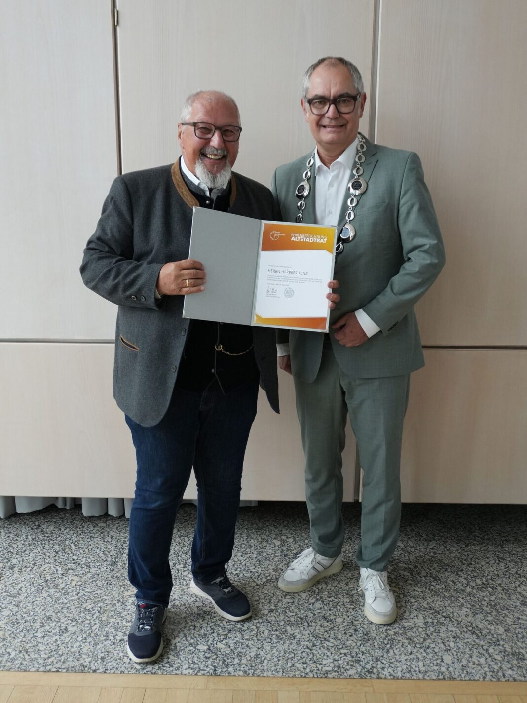 Mit dem Titel „Altstadtrat“ erhält Herbert Lenz nun eine besondere Auszeichnung für sein nachhaltiges Wirken – ein sichtbares Zeichen des Respekts und der Dankbarkeit der Stadt.