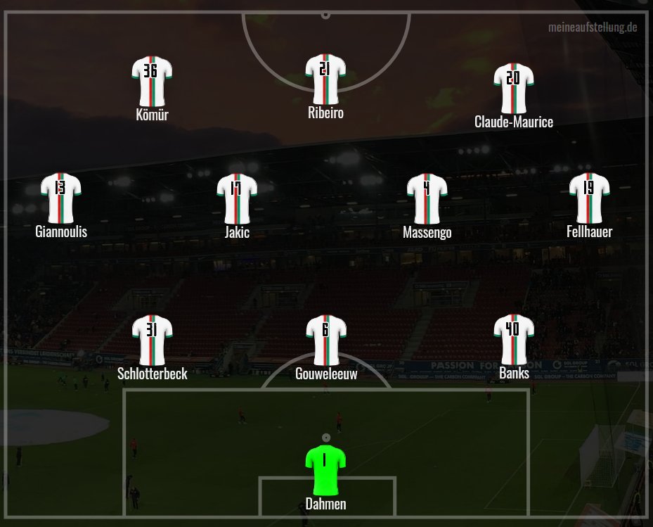 Dahmen – Banks, Gouweleeuw, Schlotterbeck – Fellhauer, Massengo, Jakic, Giannoulis – Kömür, Claude-Maurice – Ribeiro
