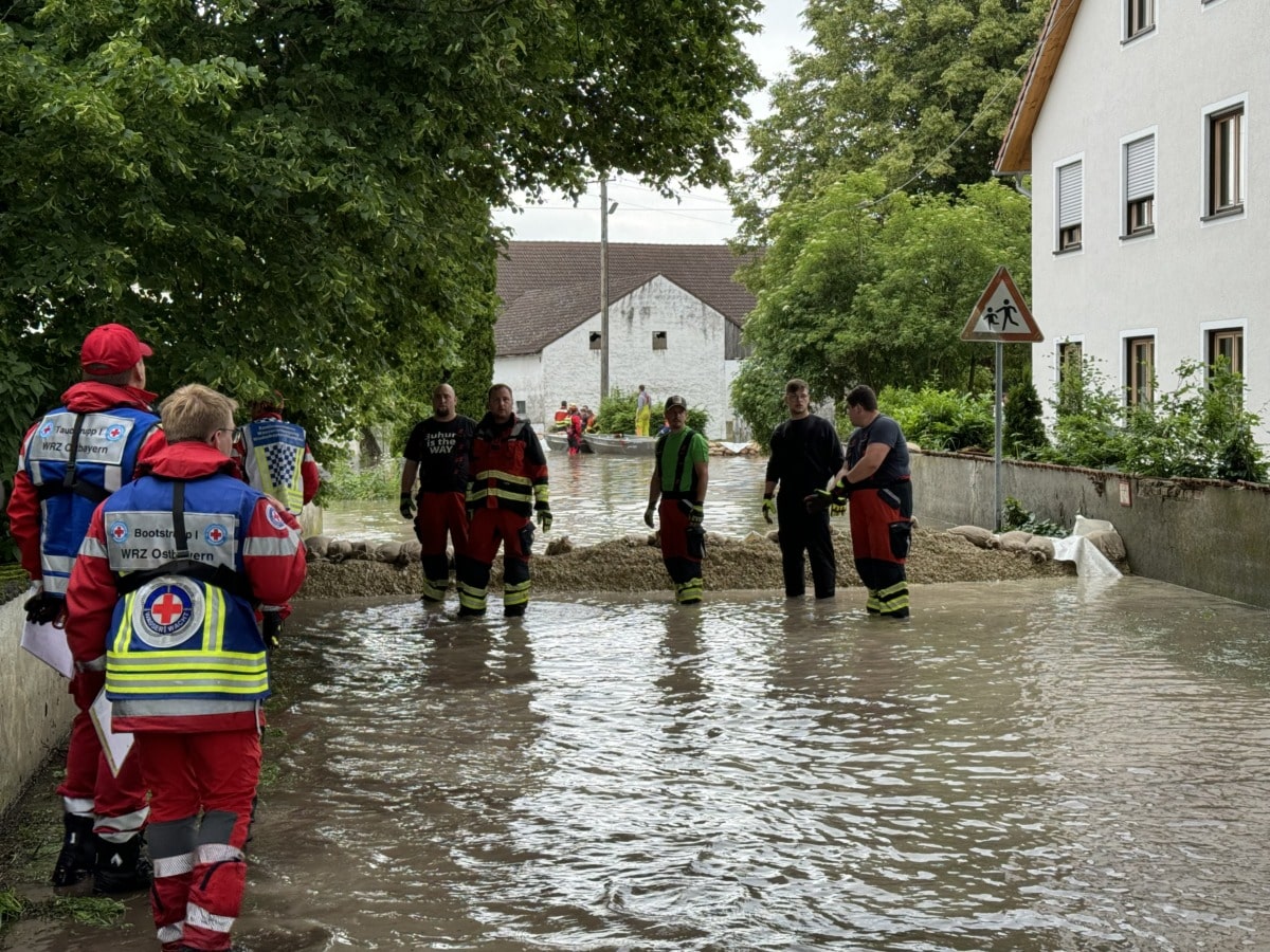 Im Manchinger Ortsteil Lindach kämpfen die Einsatzkräfte weiter gegen die Fluten, doch die Chancen schwinden. Das Wasser läuft über die angrenzenden Felder und hat den Ort mittlerweile umschlossen. Die Feuerwehr hatte zuvor versucht, mit aufgestapelten Sandsäcken und -wällen das Wasser abzuhalten, doch werden diese von den Wassermassen komplett unterspült. Der Ortskern steht nunmehr unter Wasser.