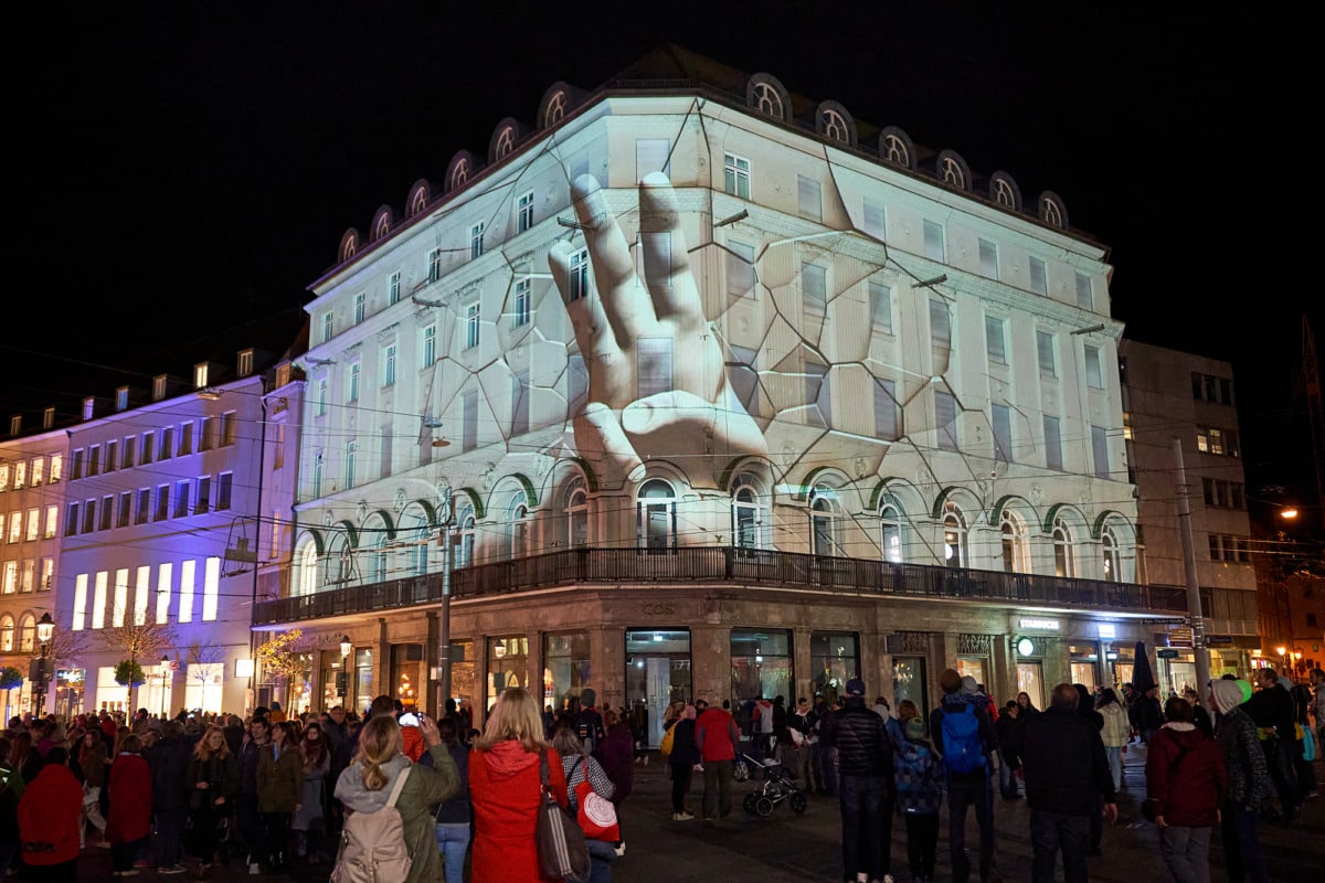 der Fassade des Rathauses ein beeindruckendes 3D-Videomapping präsentiert. Auch am Königsbau und im Annahof sind Videomappings von Kaiser Showtechnik zu bewundern.