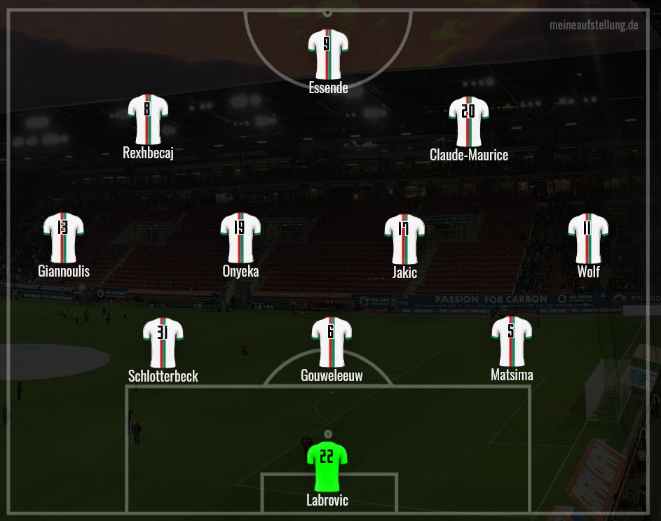 Labrovic – Matsima, Gouweleeuw, Schlotterbeck – Wolf, Onyeka, Jakic, Giannoulis – Rexhbecaj, Claude-Maurice – Essende
