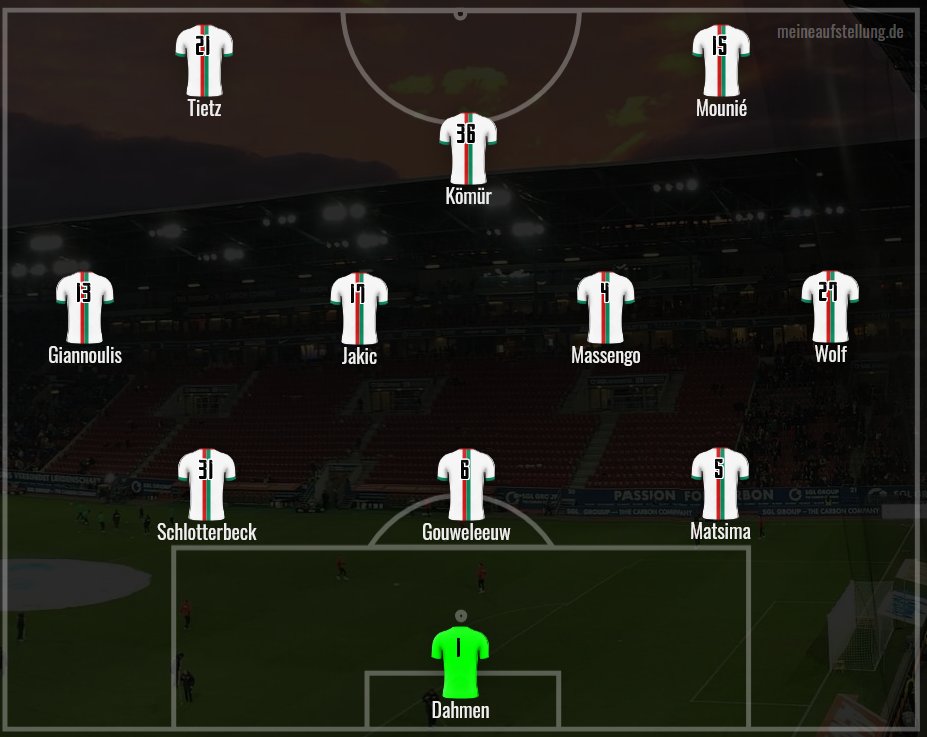 Dahmen – Matsima, Gouweleeuw, Schlotterbeck – Wolf, Jakic, Massengo, Giannoulis – Kömür – Tietz, Mounié