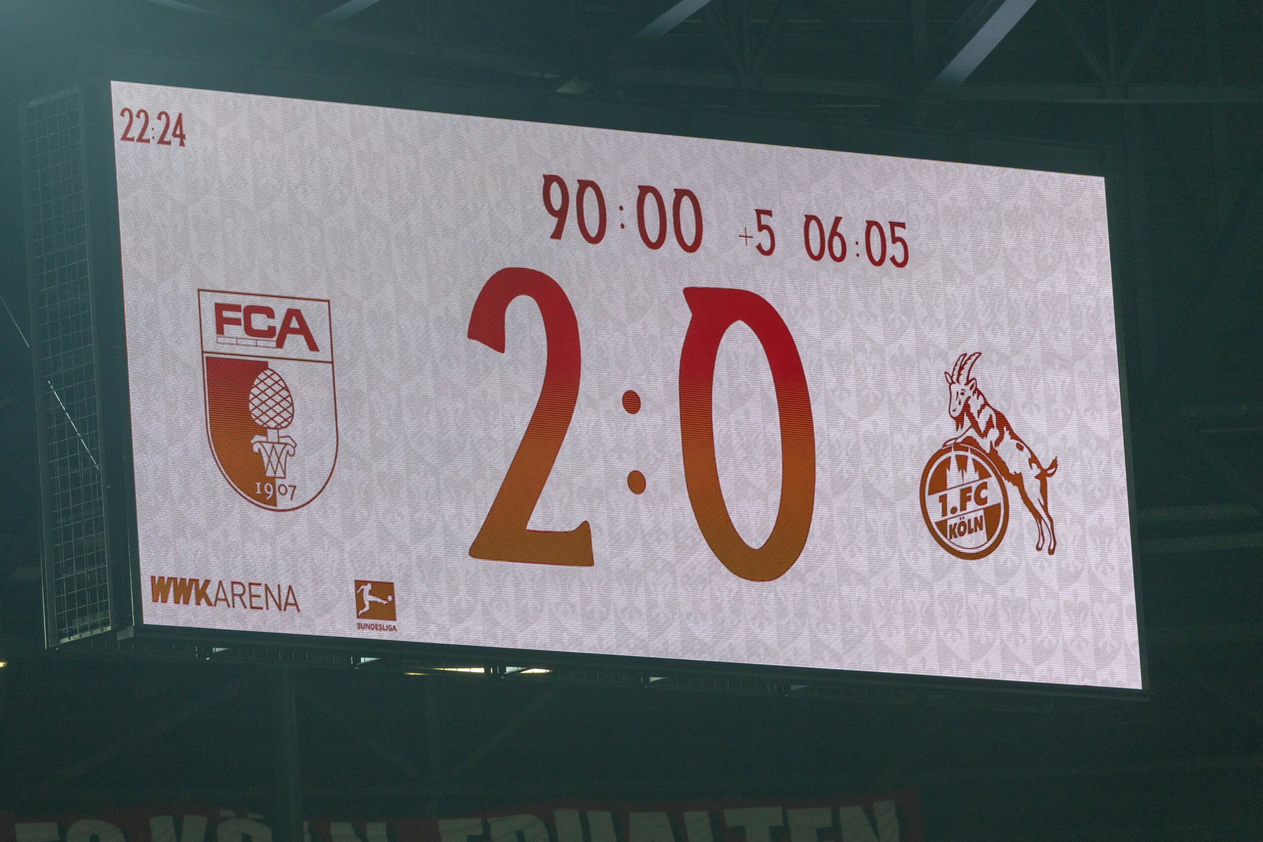 In der Nachspielzeit setzte Augsburg den Schlusspunkt: Bei einer Ecke war Köln-Keeper Schwäbe nach vorne gekommen. Gregoritsch klärte den Ball, doch er landete bei Claude-Maurice. Der Mittelfeldspieler war schneller als seine Gegenspieler und traf aus rund 40 Metern – der Ball rollte langsam und unhaltbar ins Tor. Kurz darauf hatten die Gäste noch eine große Ausgleichschance: Einen Kopfball von Özkacar rettete Schlotterbeck auf der Linie, anschließend prägte der Kapitän die Kugel endgültig aus dem Strafraum.