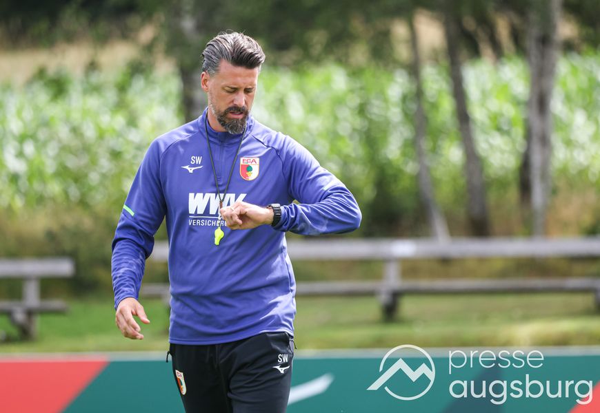 Der ehemalige Co-Trainer der Nationalmannschaft möchte man sich in Ruhe mit seiner Mannschaft auf die anstehenden Aufgaben einstellen. Die Spielweise des FCA soll offensiver, insgesamt attraktiver als zuletzt werden. Ein übergroßes Display steht als Taktiktafel am Rand des Trainingsplatzes, die neuen Ideen können so schnell und direkt für die Kicker visualisiert werden.