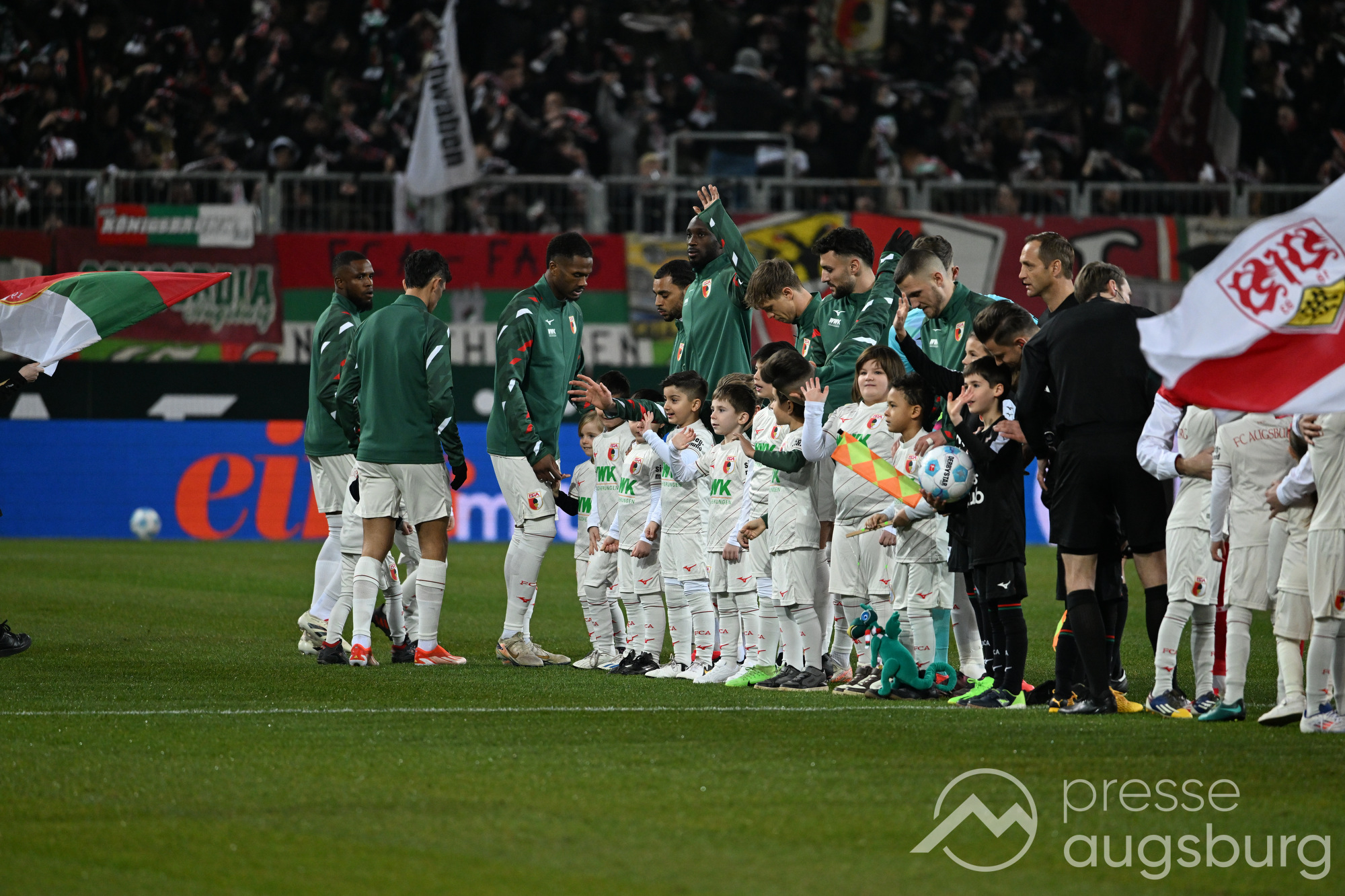 Noch blieb eine knappe halbe Stunde, um den Rückstand zumindest wieder in ein Remis zu verwandeln. Der FCA brachte für diese Mission drei frische Kräfte auf den neuen Rasen. Augsburg war bemüht, den Rückstand auszugleichen, gegen eng gestaffelte Stuttgarter Reihen konnte man sich aber kaum in wirklich aussichtsreiche Positionen bringen.