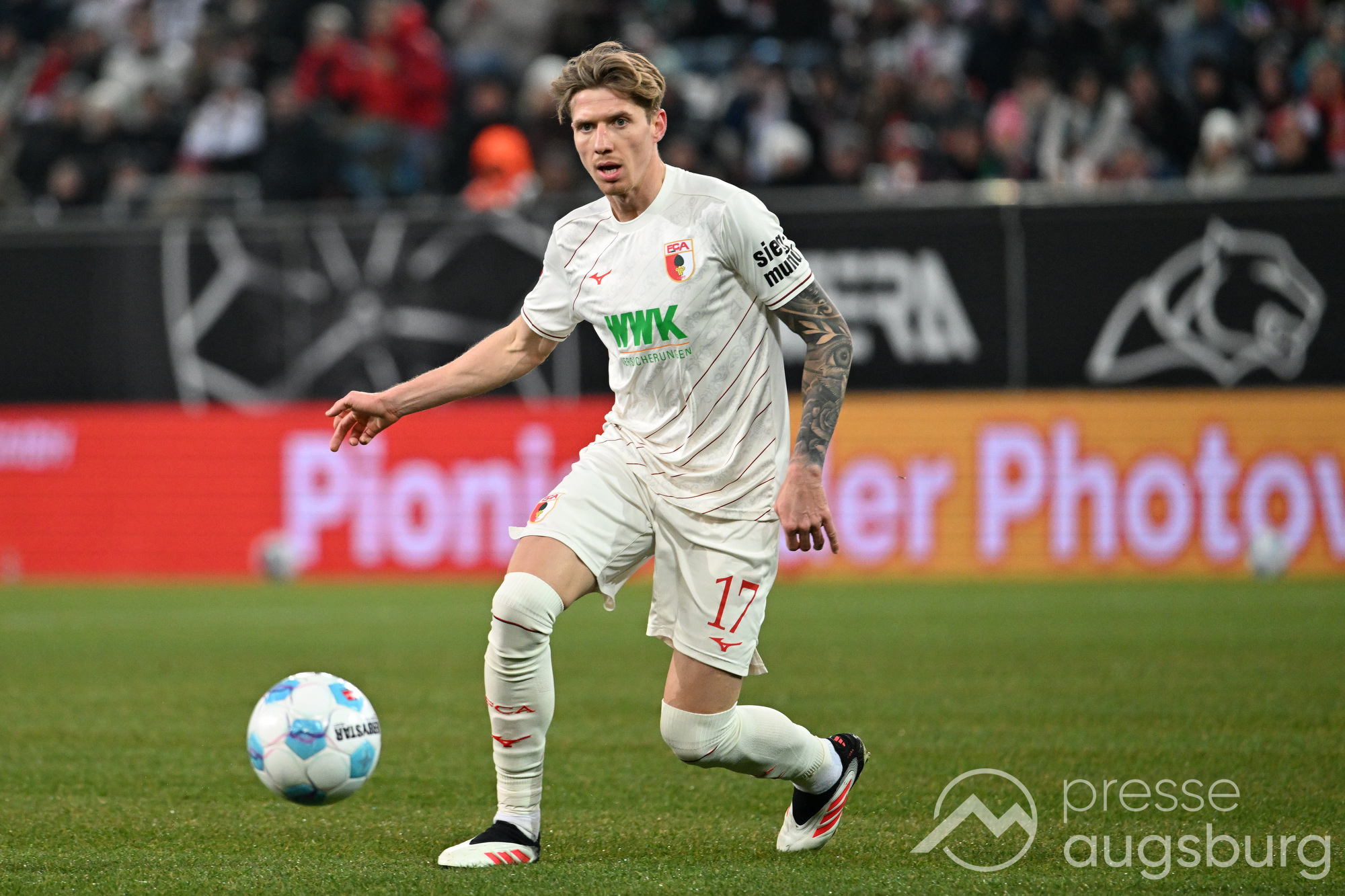 FC Augsburg: Dahmen – Matsima, Gouweleeuw, Bauer – Gumny (73. Koudossou), Jakic, Giannoulis, Onyeka (73. Maier), Rexhbecaj – Claude-Maurice (Jensen) Essende (73. Tietz)
