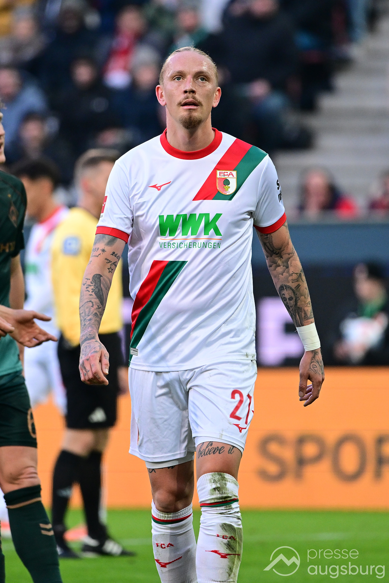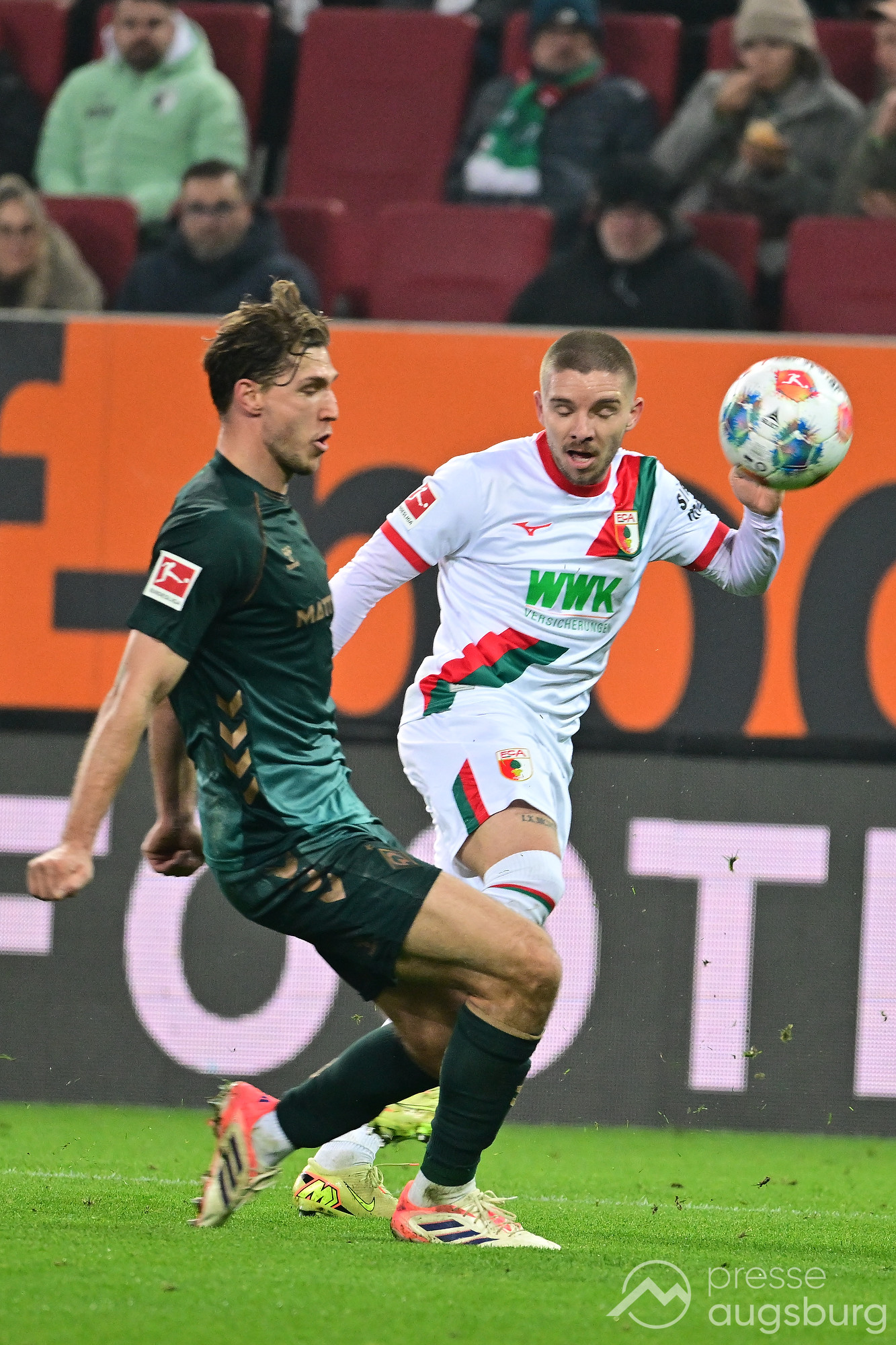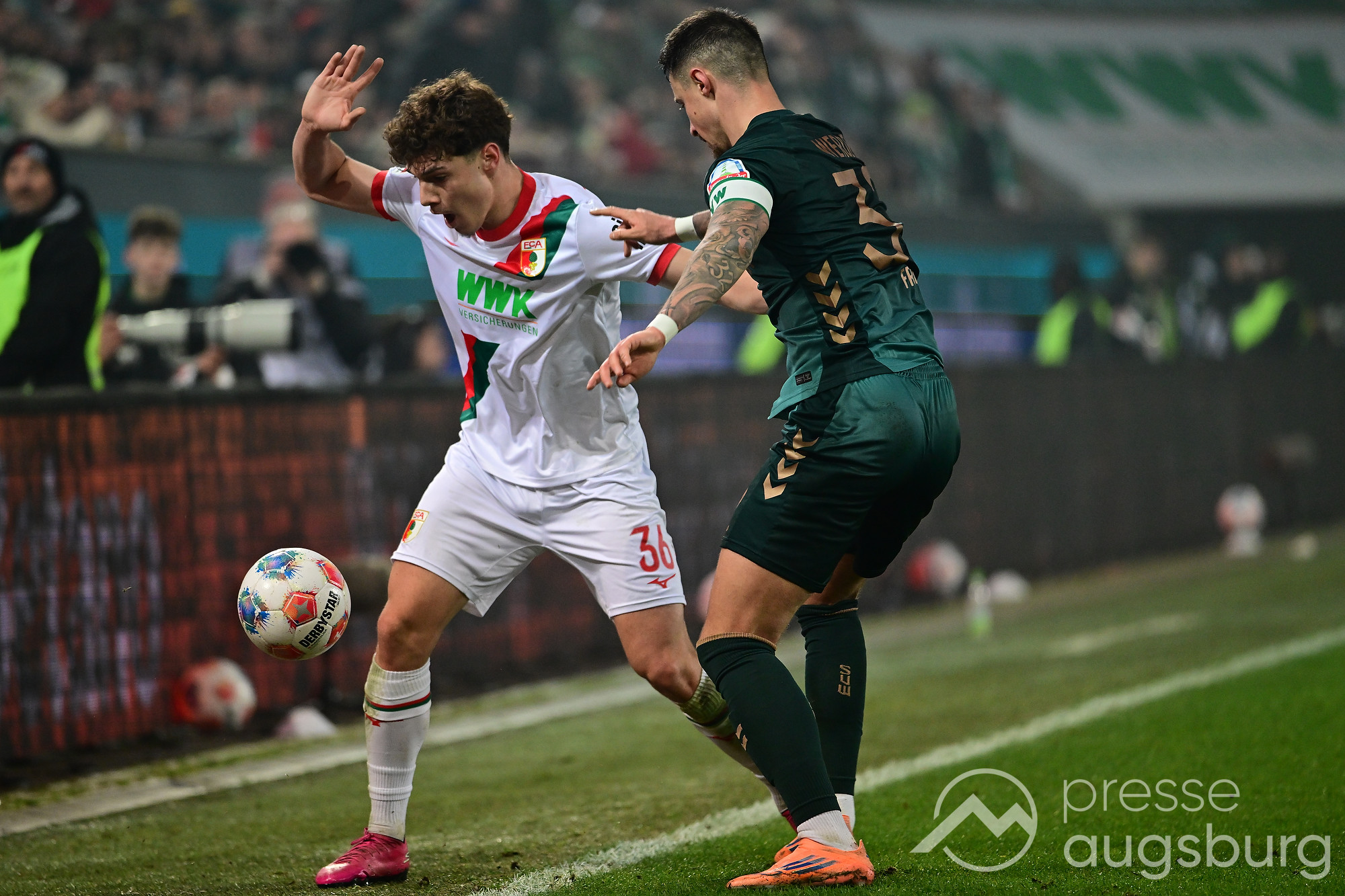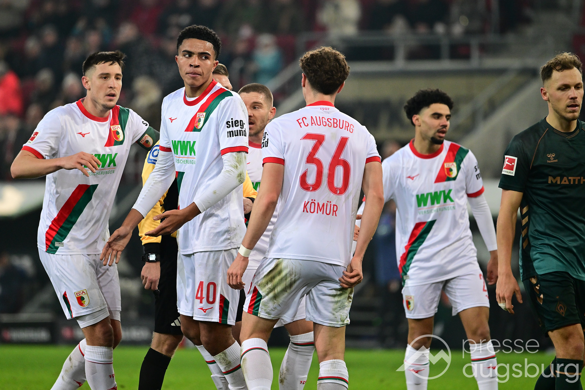 FC Augsburg: Dahmen – Banks, Zesiger, Schlotterbeck – Wolf, Jakic (56. Rexhbecaj), Massengo (90. +2 Tietz), Giannoulis (56. Pedersen), Fellhauer, Rieder (78. Dardari) – Claude-Maurice . Wolf (46. Kömür)