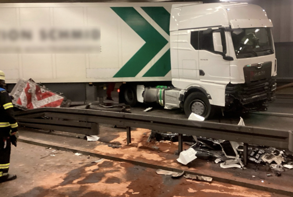 Kurz darauf musste die Feuerwehr ein weiteres Mal im Heckenstallertunnel eingreifen: Eine beschädigte Leitplanke blockierte den sicheren Betrieb und wurde entfernt. Zur weiteren Absicherung der Unfallstelle wurde ein Wechselladerfahrzeug mit Verkehrssicherungsmaterial hinzugezogen. Gegen 12:30 Uhr konnte der Einsatz vollständig abgeschlossen werden.
