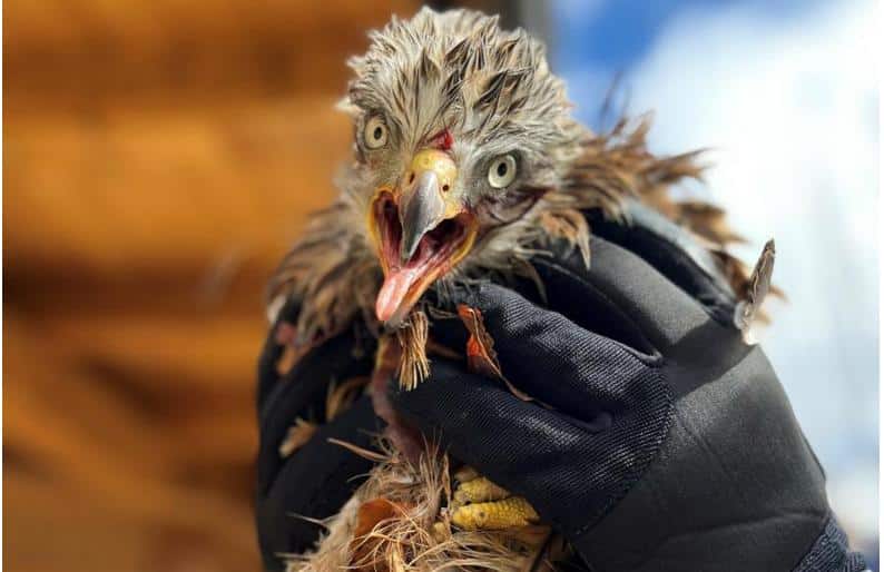 Ein Polizist nahm den Vogel ohne Gegenwehr auf. Die Beamten übergaben ihn einem nahegelegenen Wildtierpark. Dort kümmerte man sich dankenswerterweise um das Überleben des Tieres. Grund für die vielen Verletzungen des Rotmilans war vermutlich der Angriff eines Fuchses oder anderen Räubers bereits vor wenigen Tagen. Sollte der Rotmilan genesen, wird er wieder frei fliegen.