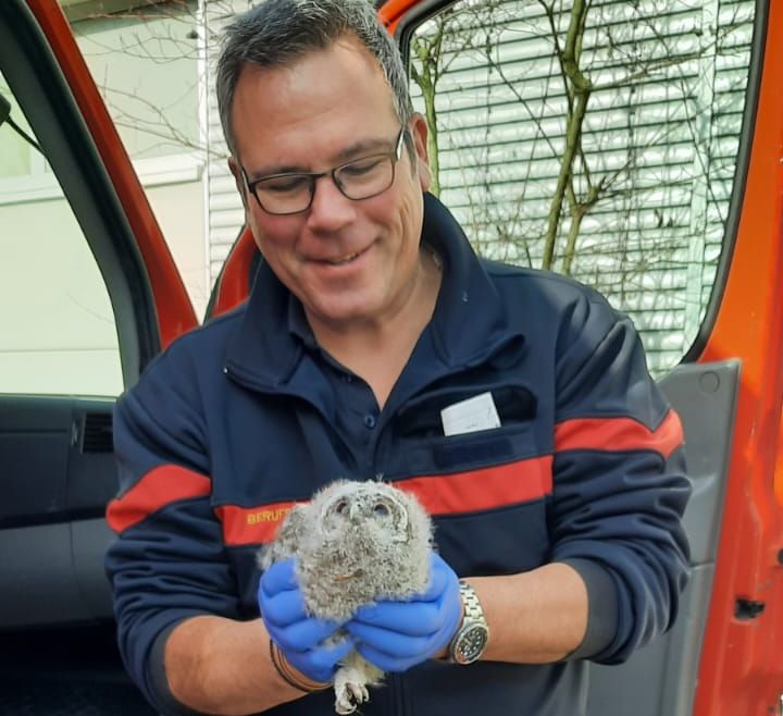 Nachdem der kleine Vogel am Klausenberg gefunden wurde, kümmerten sich die Feuerwehrleute um ihn und brachten ihn zum Tierarzt, wo er nun aufgepäppelt wird. „Schorre“ war noch so jung, dass sich nicht einmal sicher sagen ließ, ob es sich um ein Männchen oder Weibchen handelte: „Keine Ahnung, ob der Schorre aufgrund der schönen blauen Augen nicht eine Gabriella Greifvogel war…“, kommentierte die Feuerwehr mit einem Augenzwinkern.