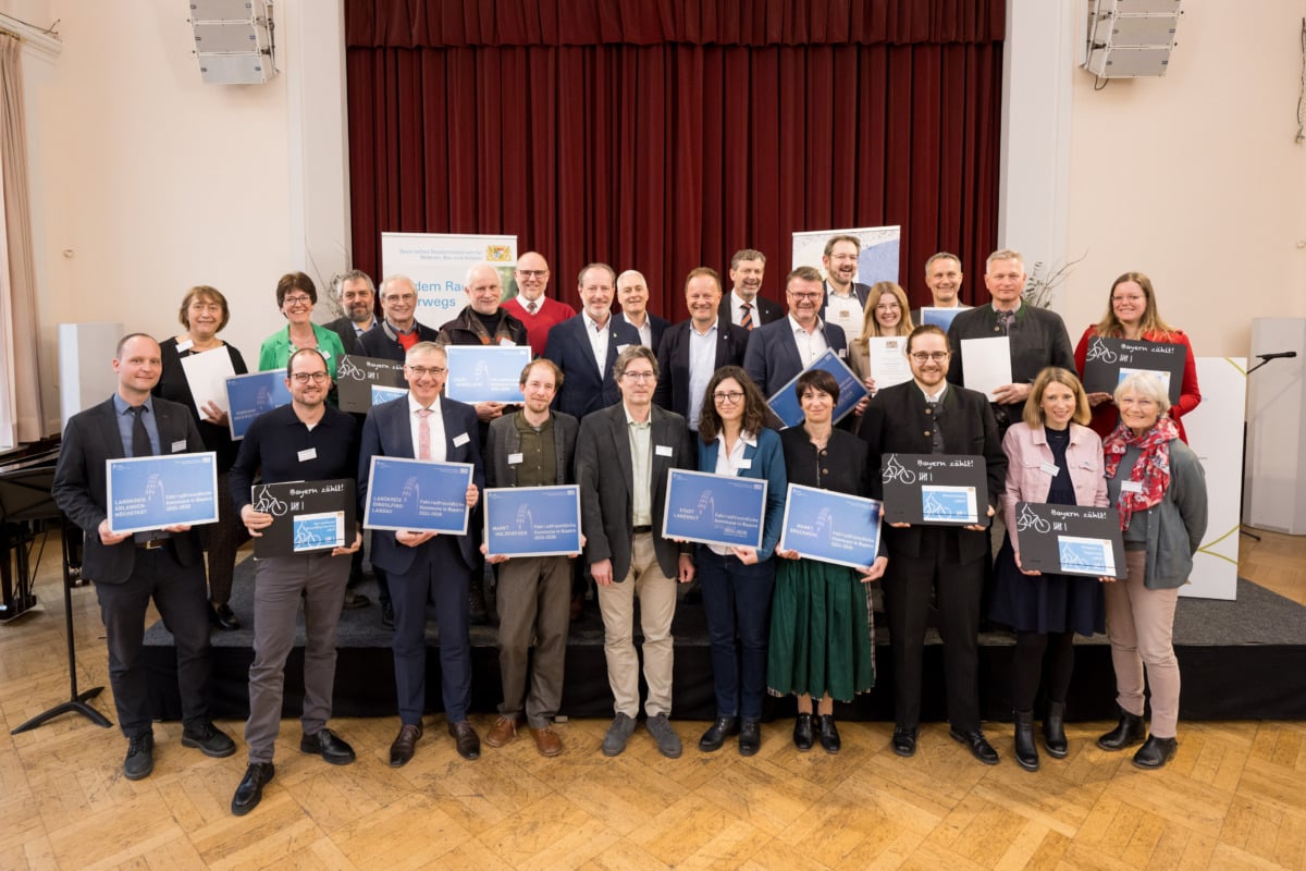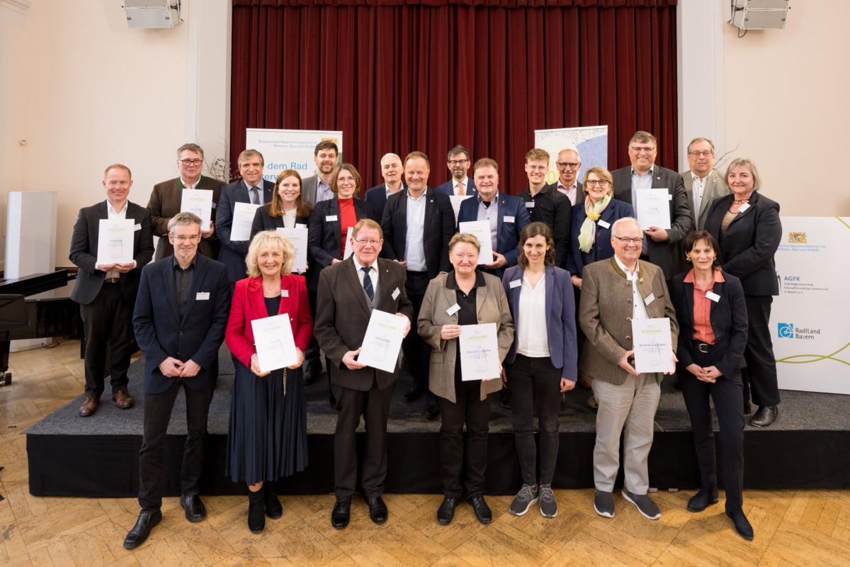 Die „Arbeitsgemeinschaft fahrradfreundliche Kommunen in Bayern“ (AGFK Bayern) wächst auf 130 Mitgliedskommunen: Bei einem Festakt am 26. Februar in München erhielten acht Kommunen die Auszeichnung „Fahrradfreundliche Kommune in Bayern“, zwei Städte wurden rezertifiziert und zwölf Kommunen konnten feierlich als neue Mitgliedskommunen in die AGFK Bayern aufgenommen werden.