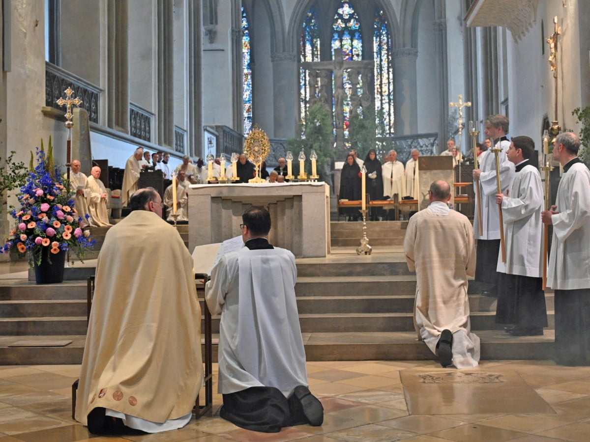 Immer am zweiten Donnerstag nach Pfingsten feiert die Katholische Kirche Fronleichnam als das Hochfest des Leibes und Blutes Christi und damit die bleibende Gegenwart Christi im Altarsakrament. Traditionell finden an diesem Tag auch feierliche Prozessionen statt. In Augsburg waren die hierfür nötigen Aufbauarbeiten aufgrund des Regens in diesem Jahr allerdings nicht möglich. Bischof Dr. Bertram Meier, der dem Gottesdienst im fast vollbesetzen Dom vorstand, bezeichnete den Tag dennoch als Demonstration und Provokation gegenüber „Gleichgültigkeit und Unwissenheit“.