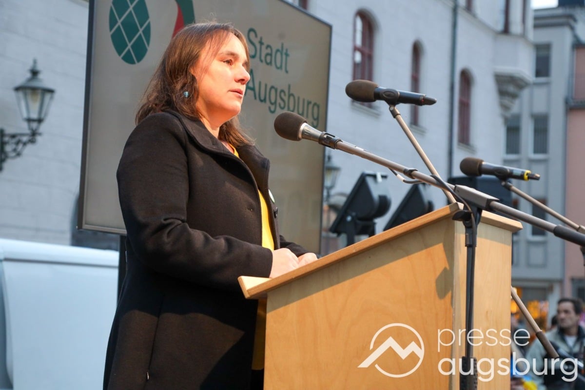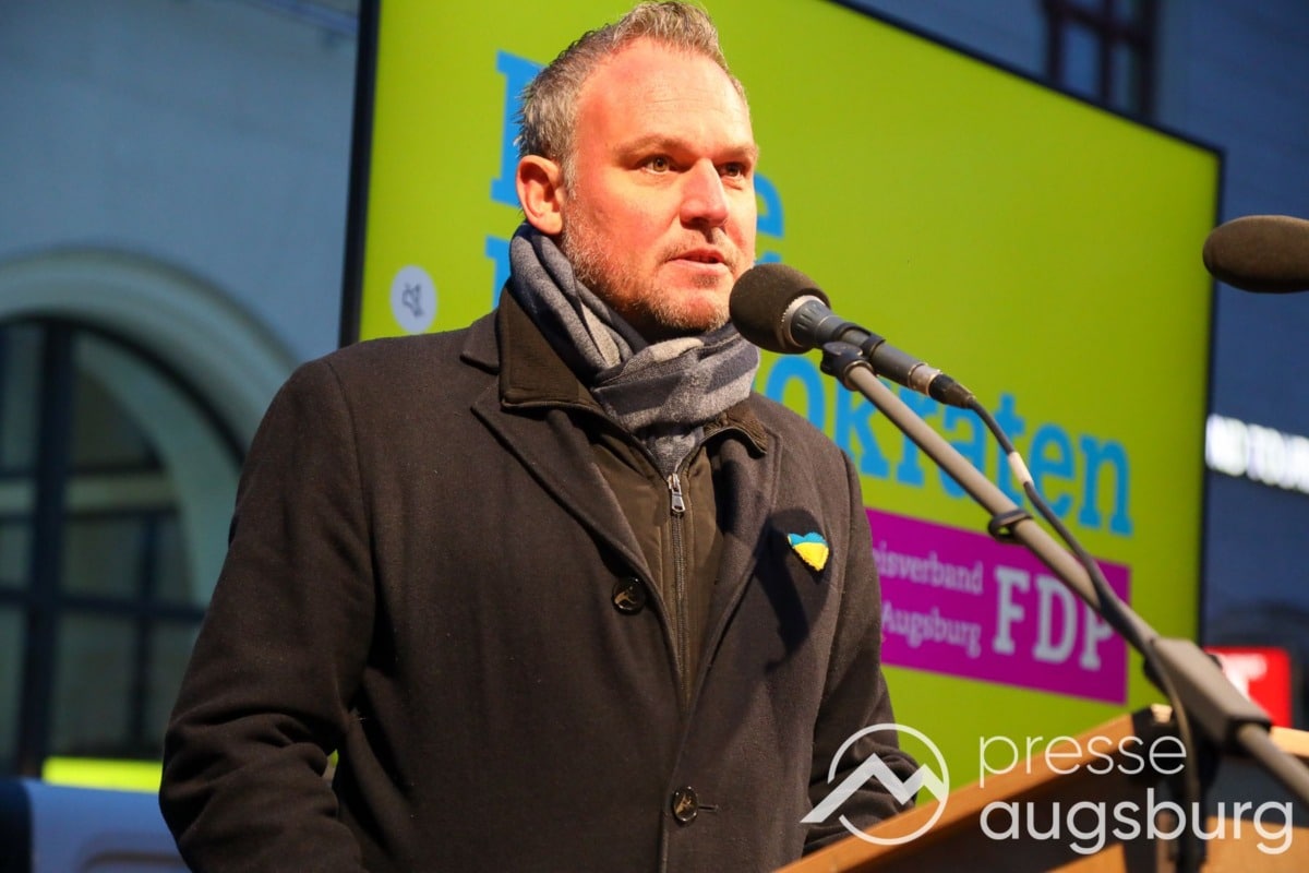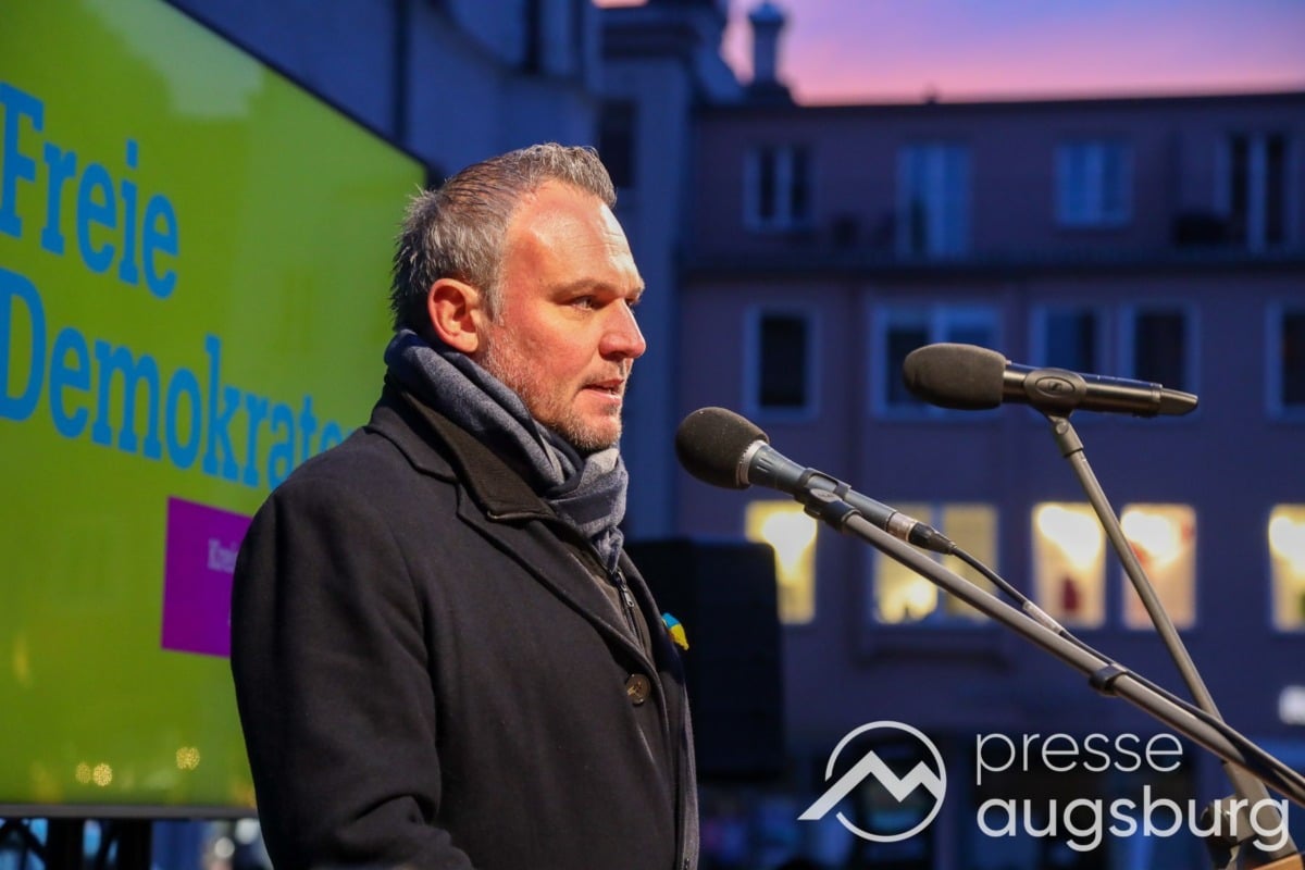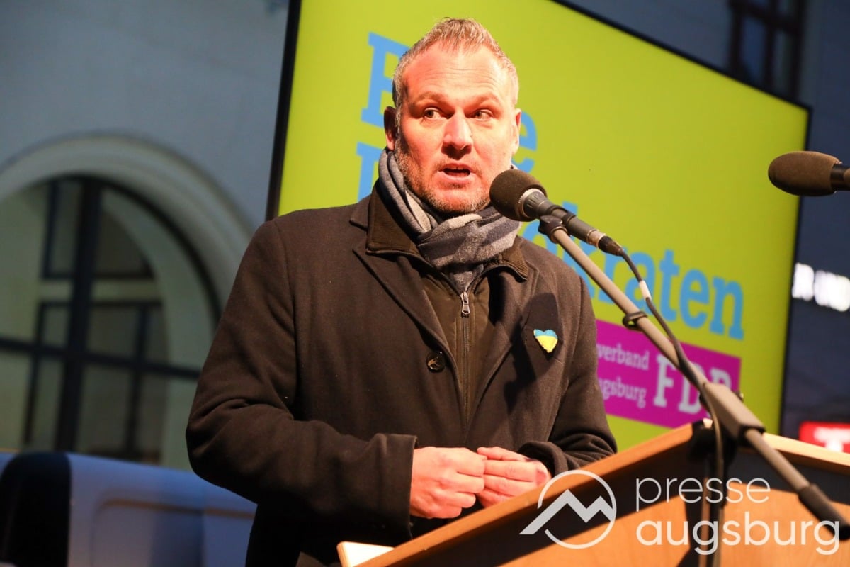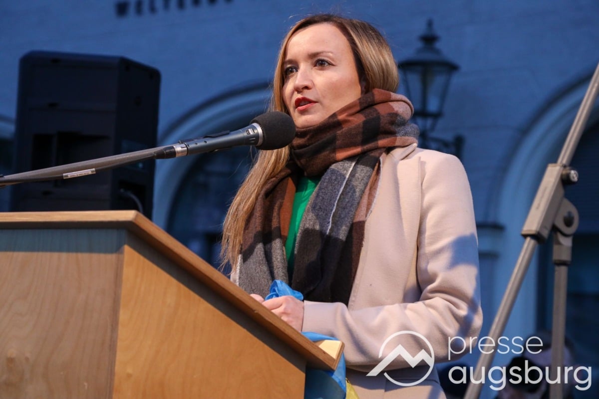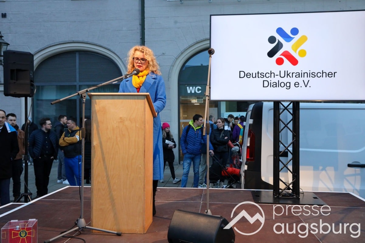 Laut ersten Schätzungen nahmen am Samstag etwa 400 Teilnehmer an einer Solidaritätskundgebung auf dem Augsburger Rathausplatz zum Jahrestag des Überfalls der Ukraine durch Russland teil. Neben Politikern verschiedenster Parteien kam unter anderem der Bürgermeister der Augsburger Projektpartnerstadt Oleh Demchenko zu Wort.