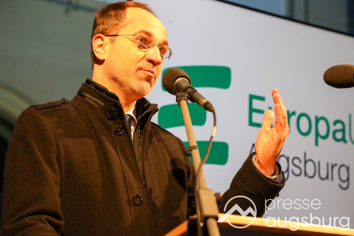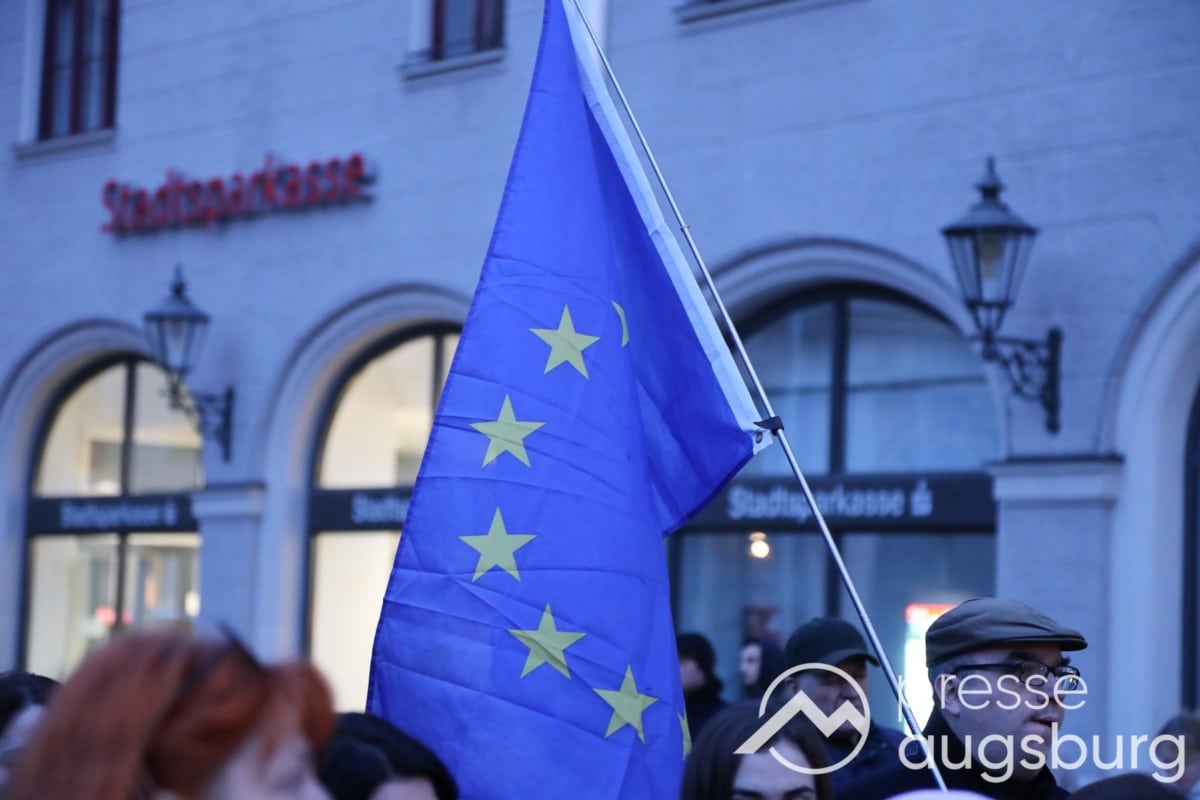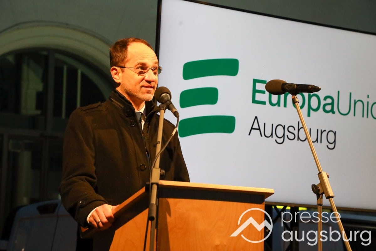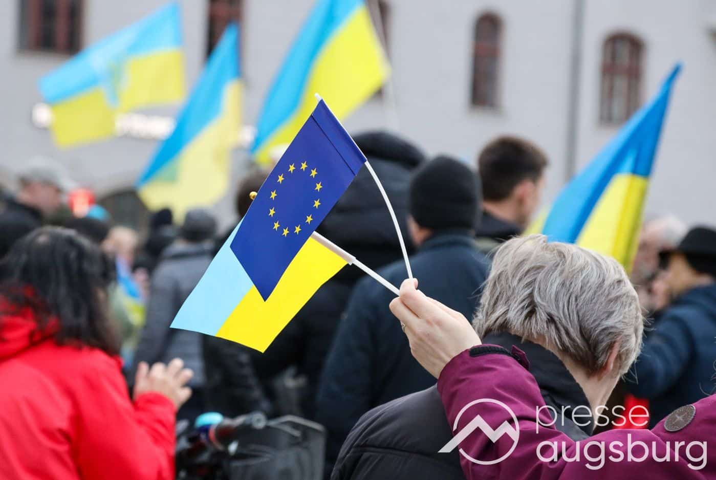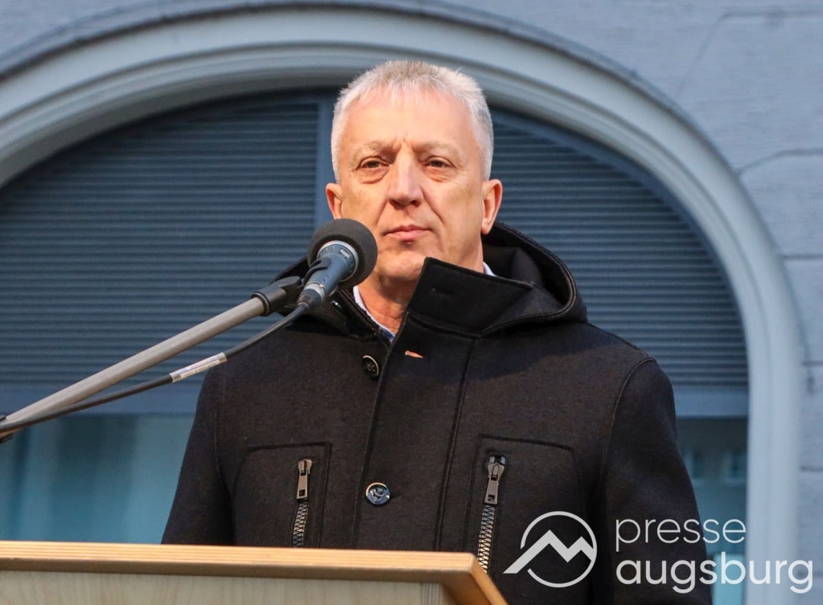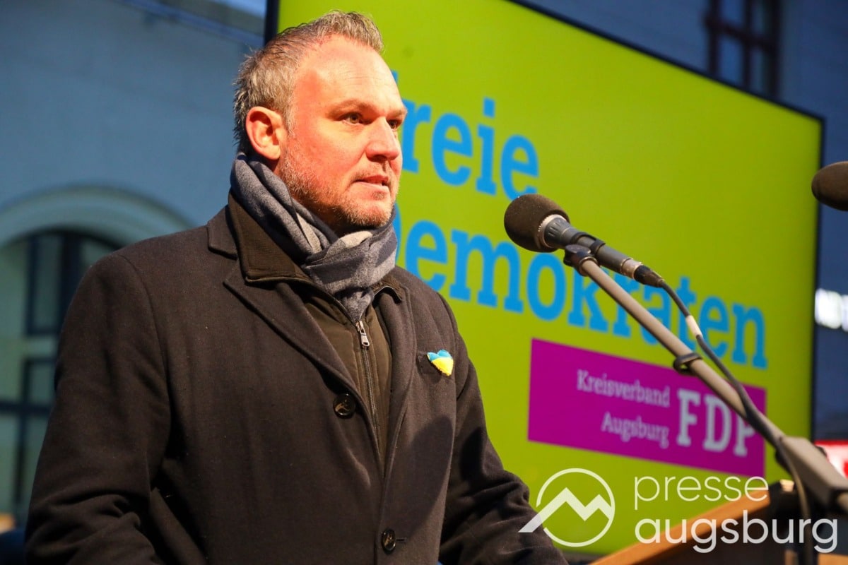 Laut ersten Schätzungen nahmen am Samstag etwa 400 Teilnehmer an einer Solidaritätskundgebung auf dem Augsburger Rathausplatz zum Jahrestag des Überfalls der Ukraine durch Russland teil. Neben Politikern verschiedenster Parteien kam unter anderem der Bürgermeister der Augsburger Projektpartnerstadt Oleh Demchenko zu Wort.