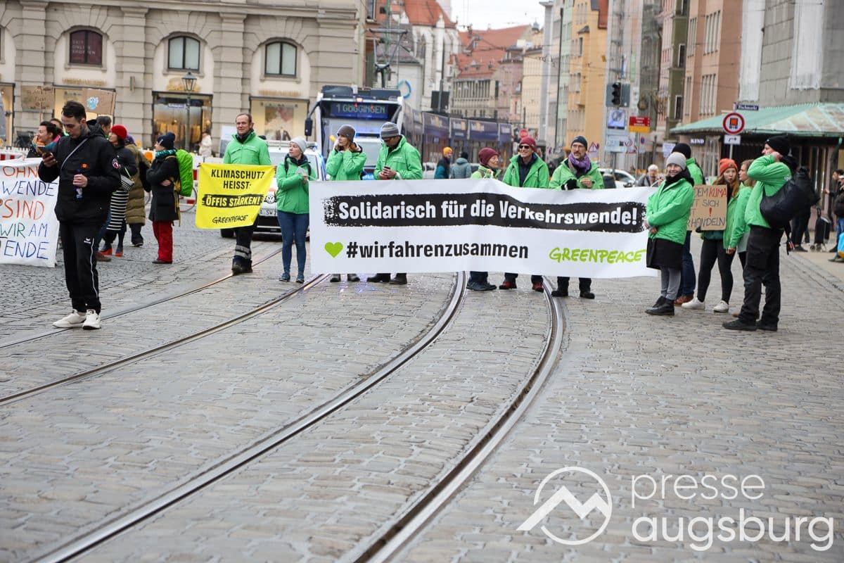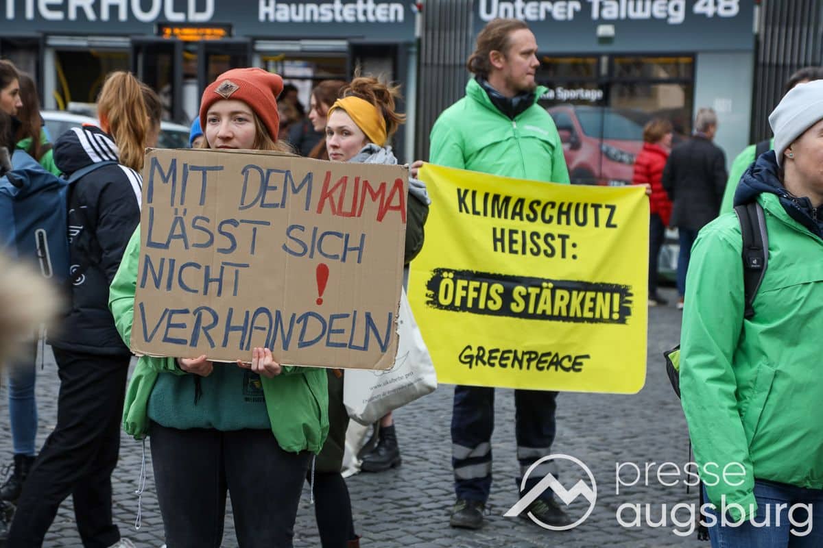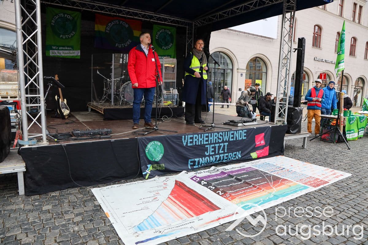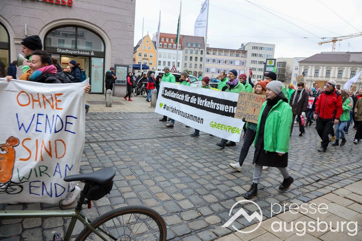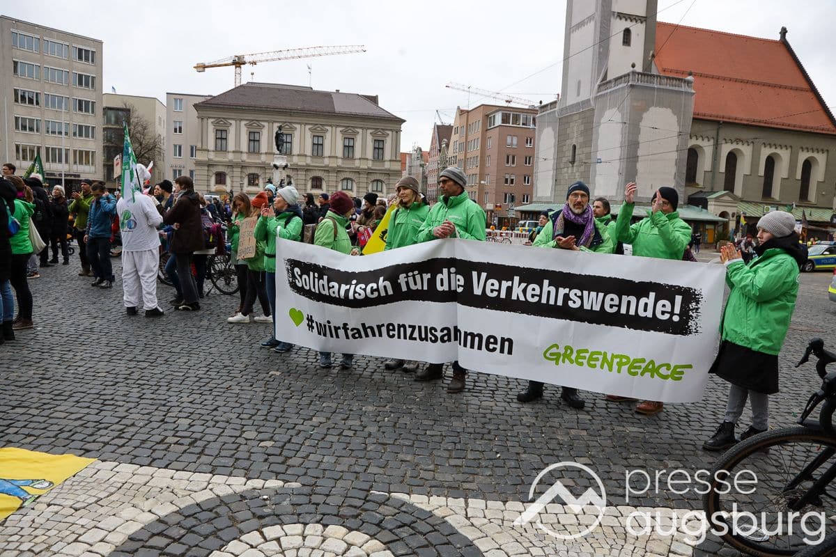 Am Freitag hatte Fridays for Future gemeinsam mit der Gewerkschaft ver.di im Rahmen einer bundesweit Demonstrationen für eine klimafreundliche und sozial gerechte Mobilitätswende auch für Augsburg zu Aktionen aufgerufen. Auf dem Rathausplatz und zu einem Demozug in der Innenstadt kamen wohl rund 500 Teilnehmer.