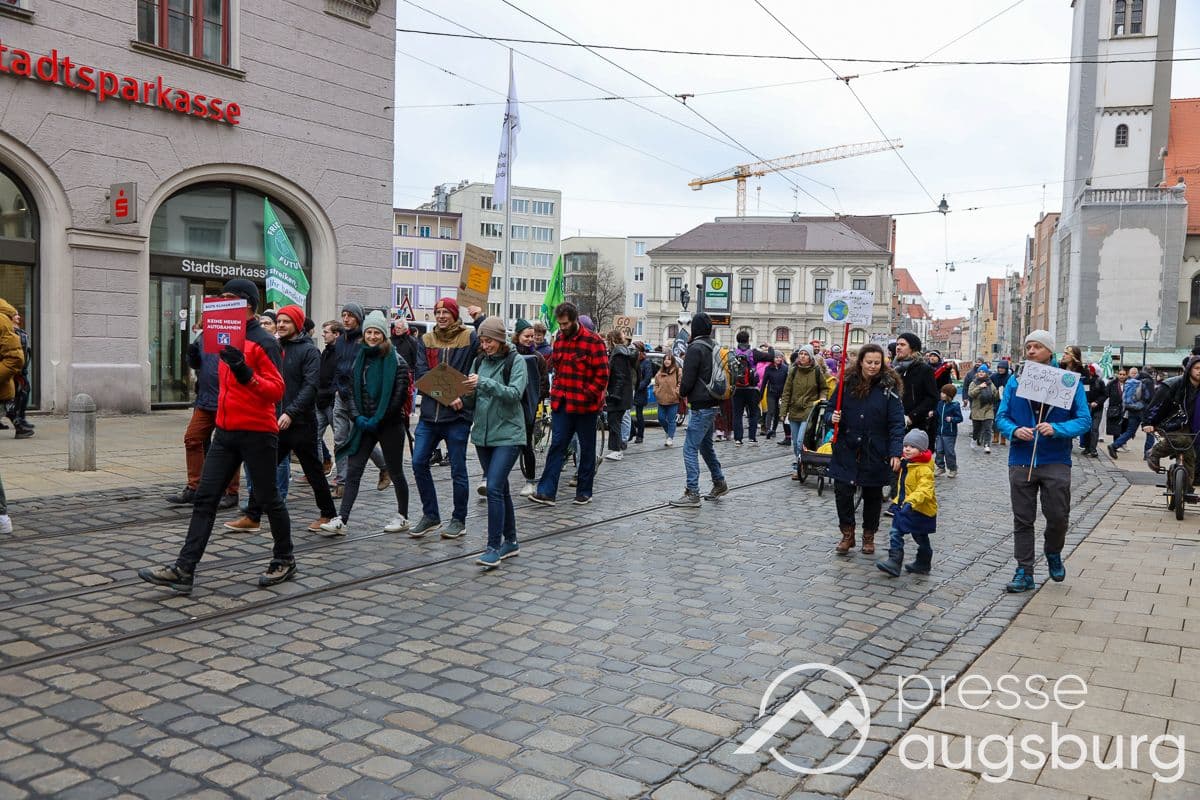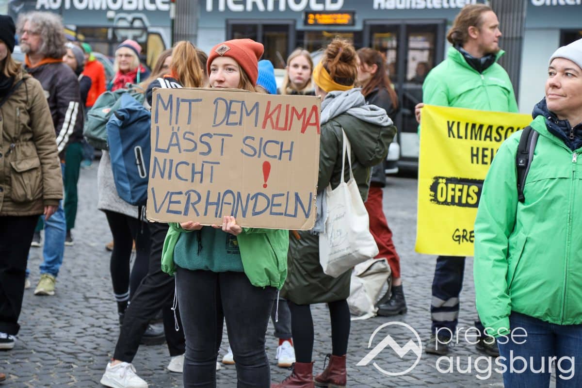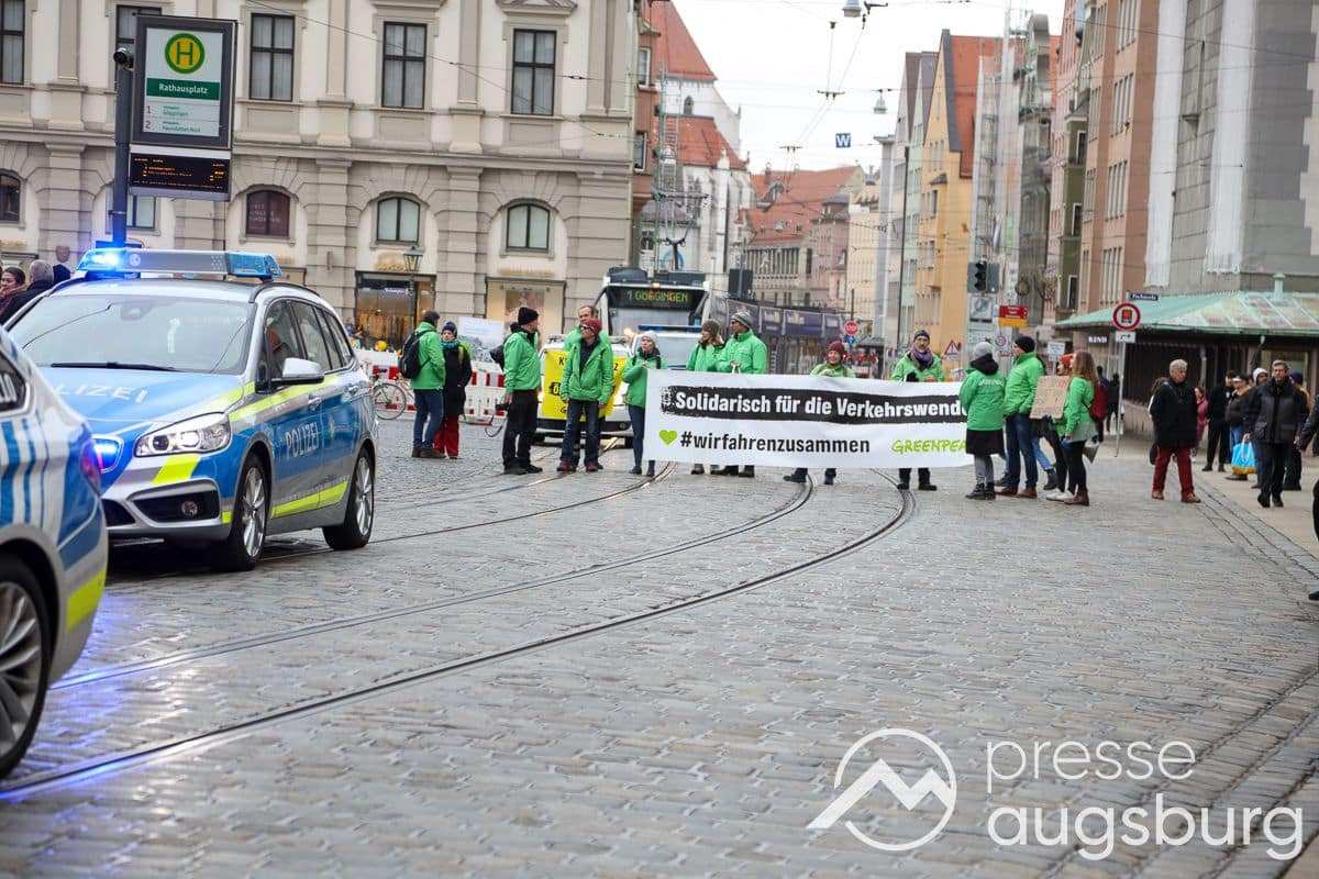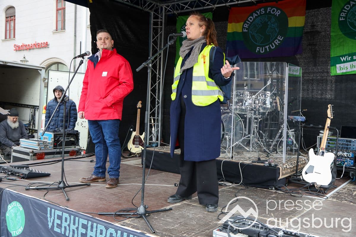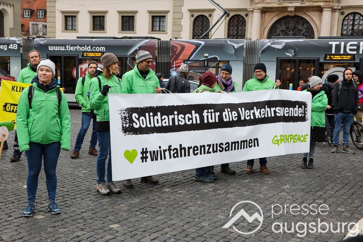 Am Freitag hatte Fridays for Future gemeinsam mit der Gewerkschaft ver.di im Rahmen einer bundesweit Demonstrationen für eine klimafreundliche und sozial gerechte Mobilitätswende auch für Augsburg zu Aktionen aufgerufen. Auf dem Rathausplatz und zu einem Demozug in der Innenstadt kamen wohl rund 500 Teilnehmer.