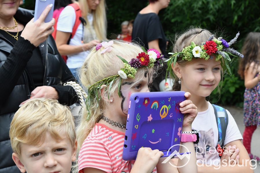 Seit über 370 Jahren findet am 8. August am Augsburger Hohen Friedensfest auch ein Kinderfriedensfest statt. Wie seit vielen Jahren fanden sich auch heute wieder viele Familien in Zoo und Botanischen Garten ein, um miteinander zu spielen und zu feiern.